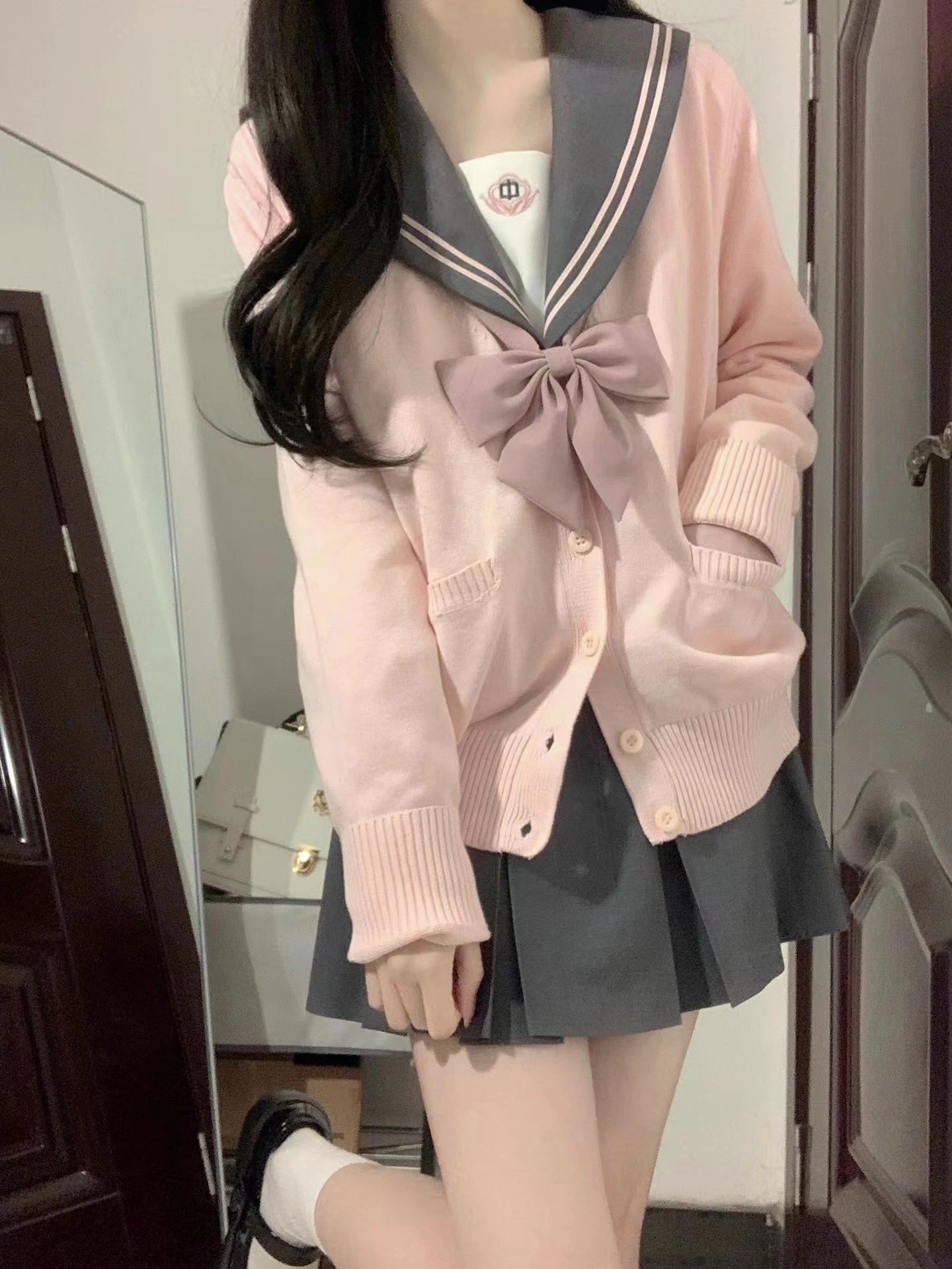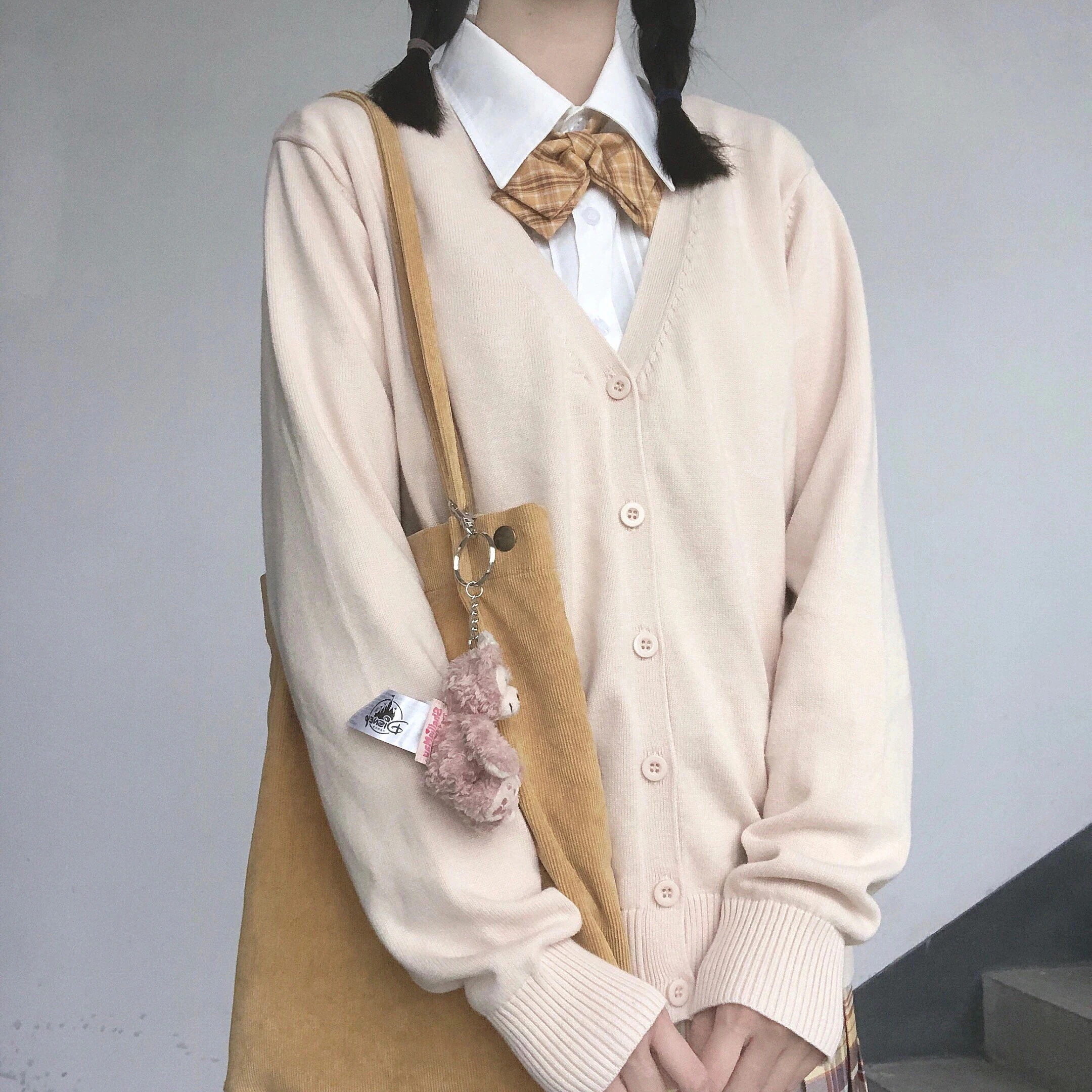 ふんわり カーディガン ニットセーター秋アウター 制服 スクール制服カーディガン薄手夏ピンクコットンかわいいケーブル編み お揃い学生 無地 ゆったり Vネック ニット 綿 スクール