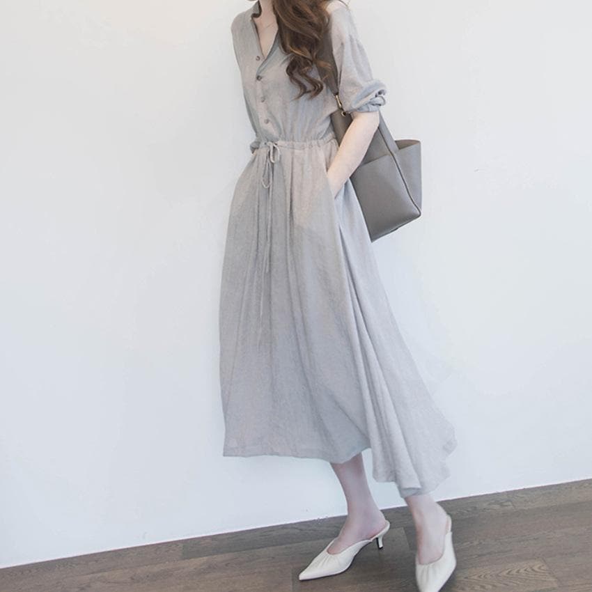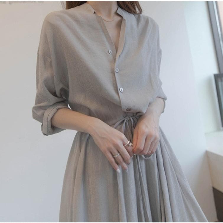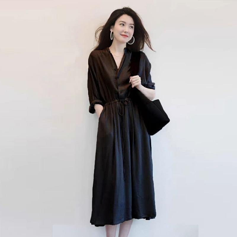 シャツワンピース レディース ロングワンピース 長袖 秋 春 大きいサイズ マキシ丈 体型カバー ゆったり結婚式 ドレス オシャレ 上品 着痩せ