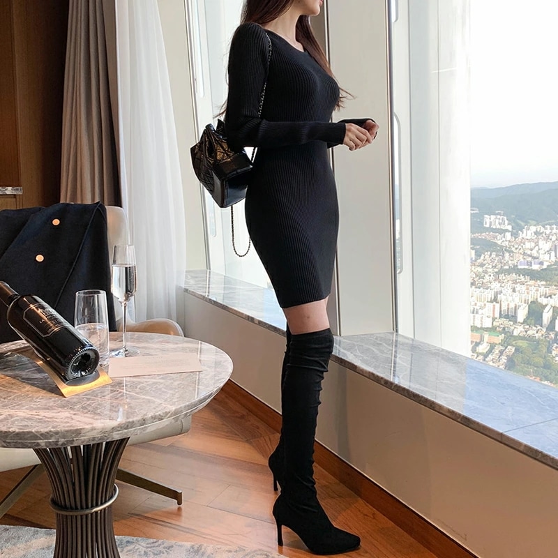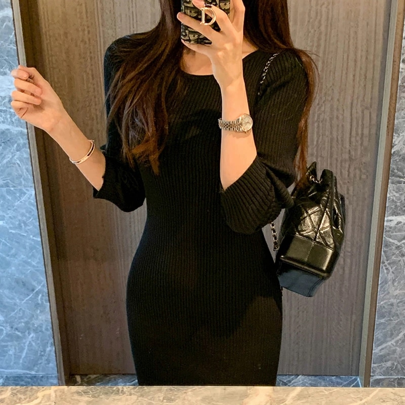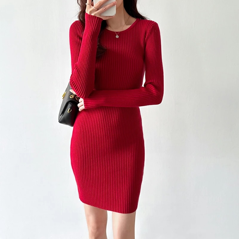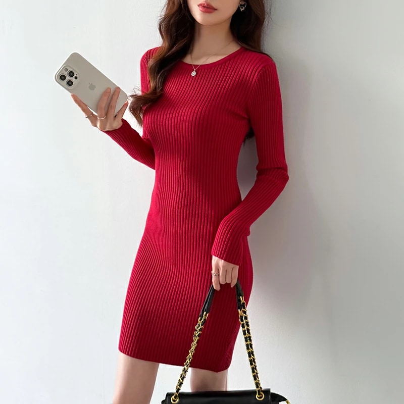 タイトワンピース ニットワンピース ミニワンピ セクシー ミニ ワンピース ニット タイト 長袖 レディース リブニット ワンピ ミニワンピース リブニットワンピース