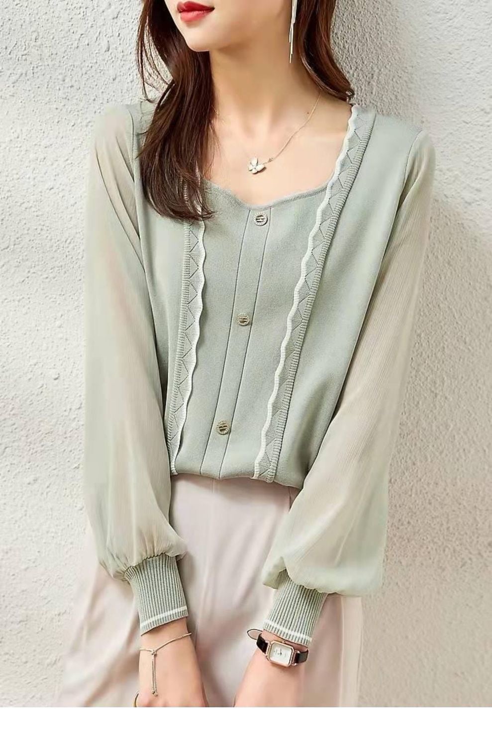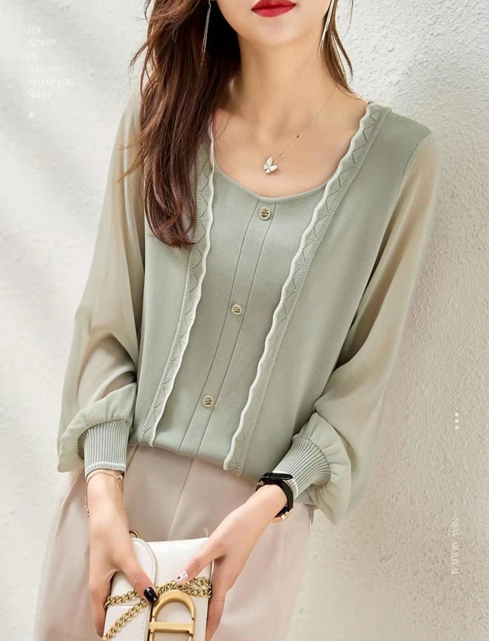シフォンブラウス シアーブラウス ボリューム袖
