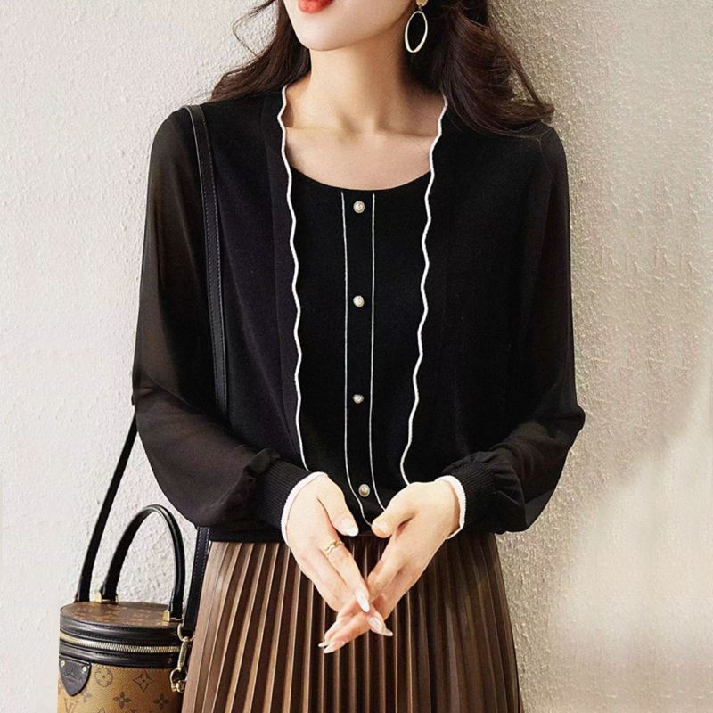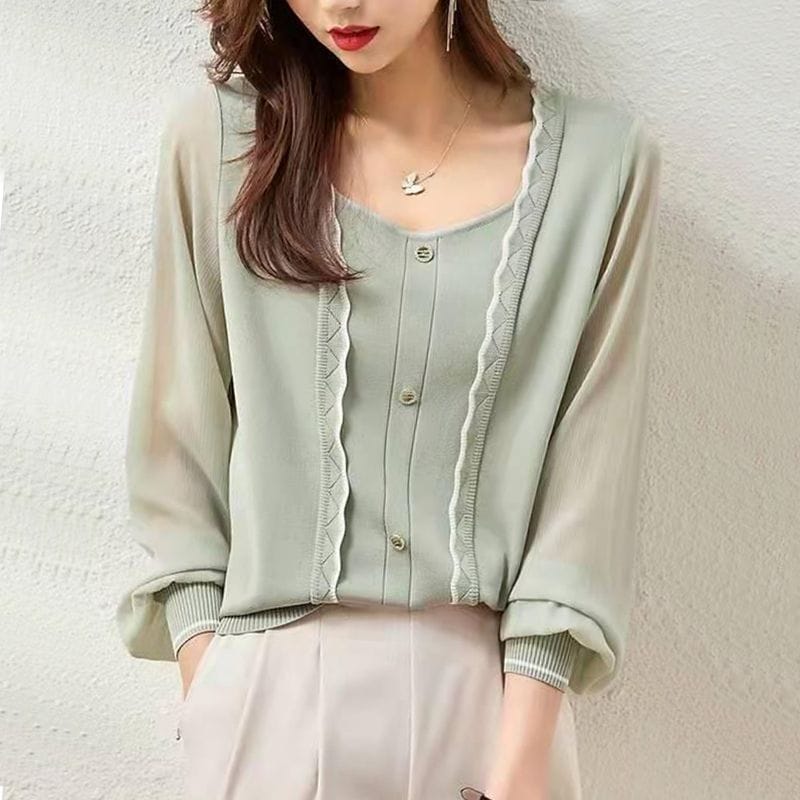 春先取りブラウス長袖ブラウス 韓国ファッションブラウスシャツ百掛けブラウスレディース着痩せ tシャツ長袖シャツシンプルTシャツシアーシャツ シャツ ブラウス