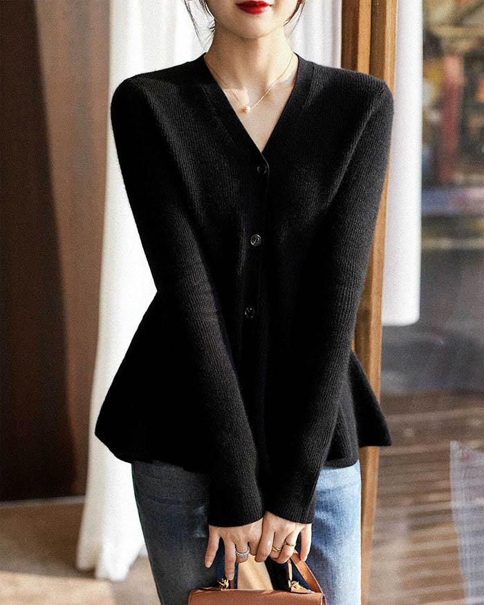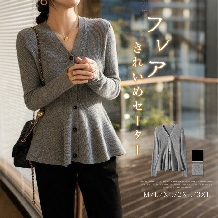 カーディガン レディース 秋 冬 ボタンあり フレア セーター 長袖 ゆったり フェミニン 着回し シンプル カジュアル 大きいサイズ 体型カバー 柔らかい お洒落 女性らしい 通勤 普段着