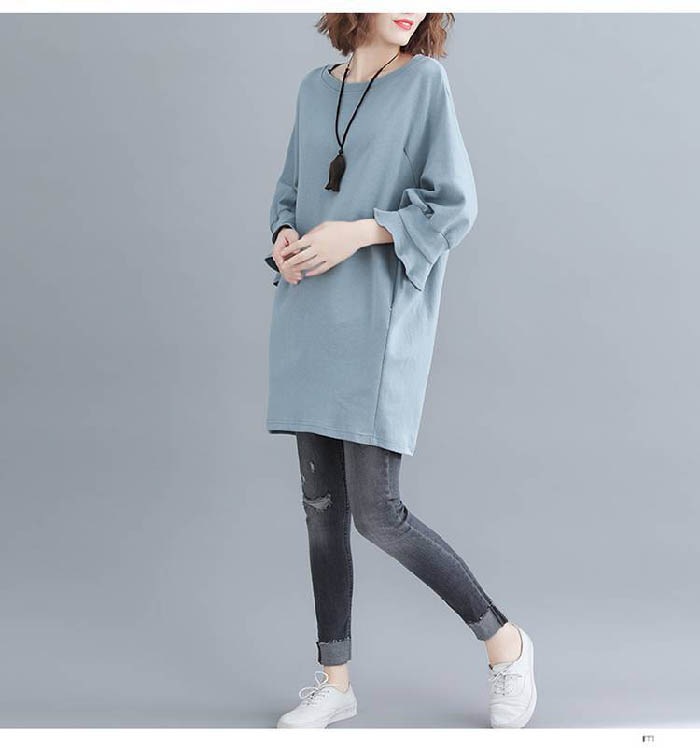 チュニック レディース 春 秋 フレア袖 フリル袖 大きいサイズ トレーナー 7分袖 ゆったり Tシャツ ロンT ブラウス オシャレ カジュアル ウエストギャザー 着回し 体型カバー ゆったり ゆるっ