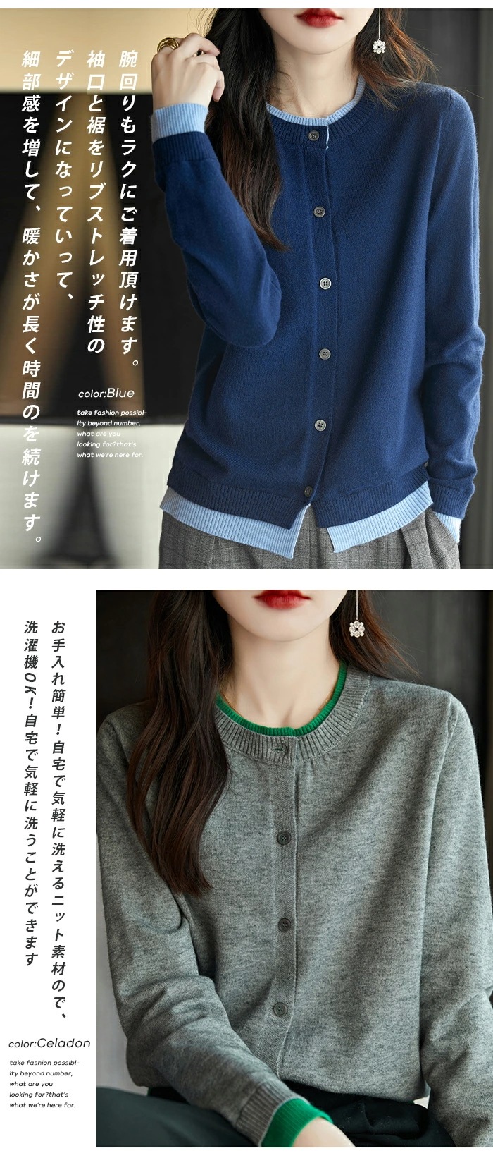 カーディガン 長袖 ニット レイヤード レディース ニットカーディガン 切り替え ボレロ クールネック トップス 大きいサイズ フライスカーデ ショート丈 レイヤードニット 肩掛け アウター 2枚重ね