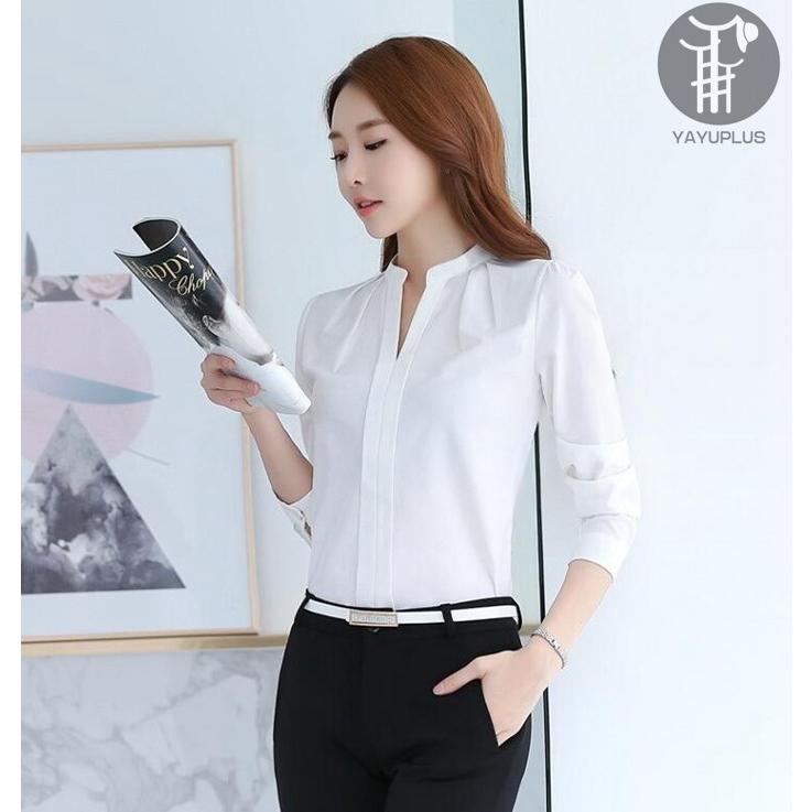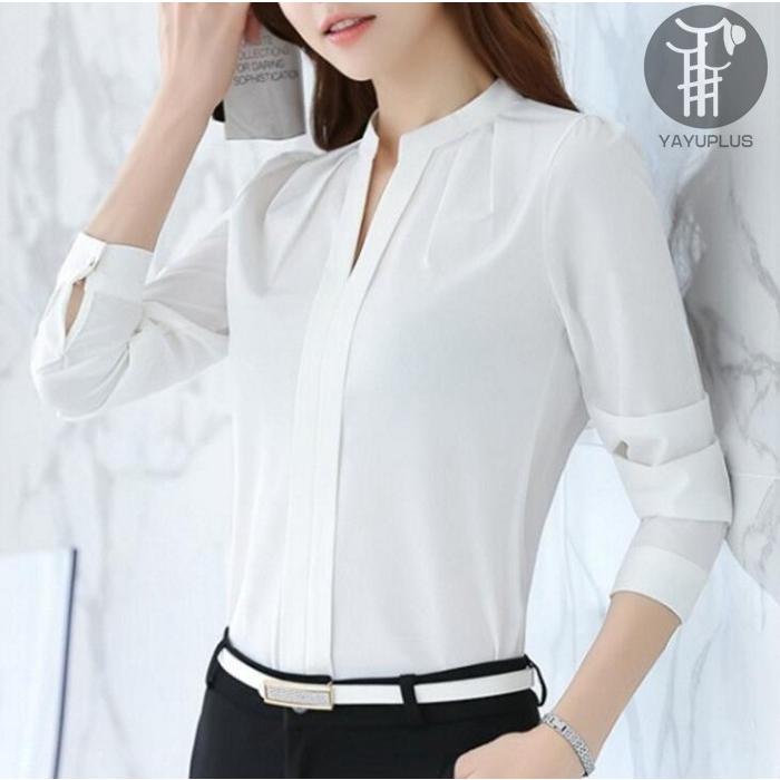 シャツ ブラウス レディース トップス 長袖 ビジネス オフィス Vネック フォーマル スーツインナー リクルート 就活 事務服 無地 シャツ ブラウス