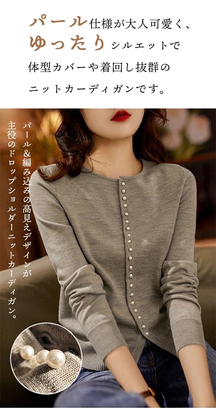 カーディガン 長袖 ニット パールボタン レディース クールネック ニットカーディガン ショート丈 プルオーバー リブ袖 トップス 大きいサイズ フライスカーデ 肩掛け ボレロ 大人 ライトアウター