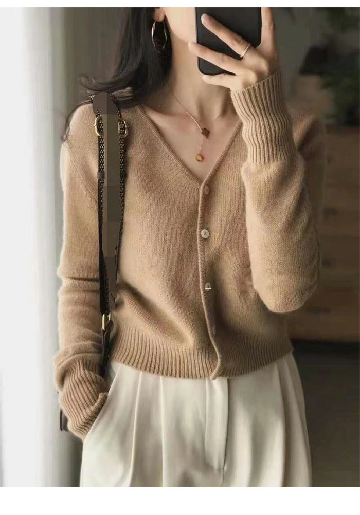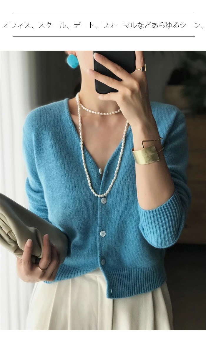 ウール カーディガン Vネック ニット レディース ウール100% ニットカーディガン ショート丈 トップス 長袖 リブニット 前開き ケーブルニット カーデ カットソー 体型カバー ゆったり 軽い