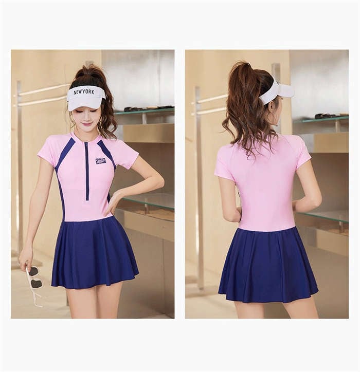 水着 レディース ワンピース 体型カバー 大きいサイズ かわいい おしゃれ 無地 フィットネス 半袖 ハイウエスト 露出控えめ スポーツウェア スカート オールインワン ママ水着 オトナ女子 フィット