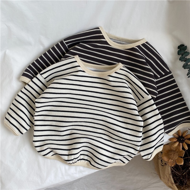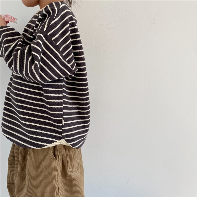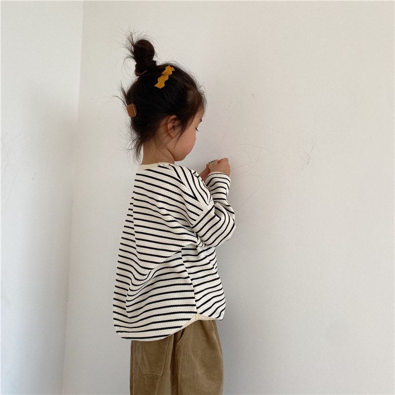 韓国版春の新作子供の定番ストライプのロンT男女子供ニット長袖プルオーバー Tシャツ