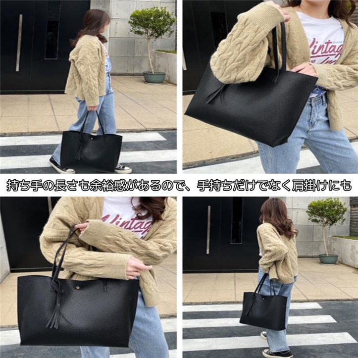 トートバッグ レディース 薄い a4 大きめ 軽量 肩掛け 仕切り 防水 通学 PVCレザー 無地 仕事 ショルダーバッグ