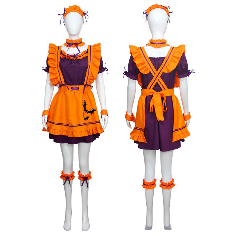 メイド服 コスプレ メイド エプロン セット 半袖 コスプレ衣装 セクシー メイド コスプレ オレンジ色 セクシー コスチューム レディース 可愛い 大人用 ハロンウィン仮装 ショート丈 ミニ丈 制