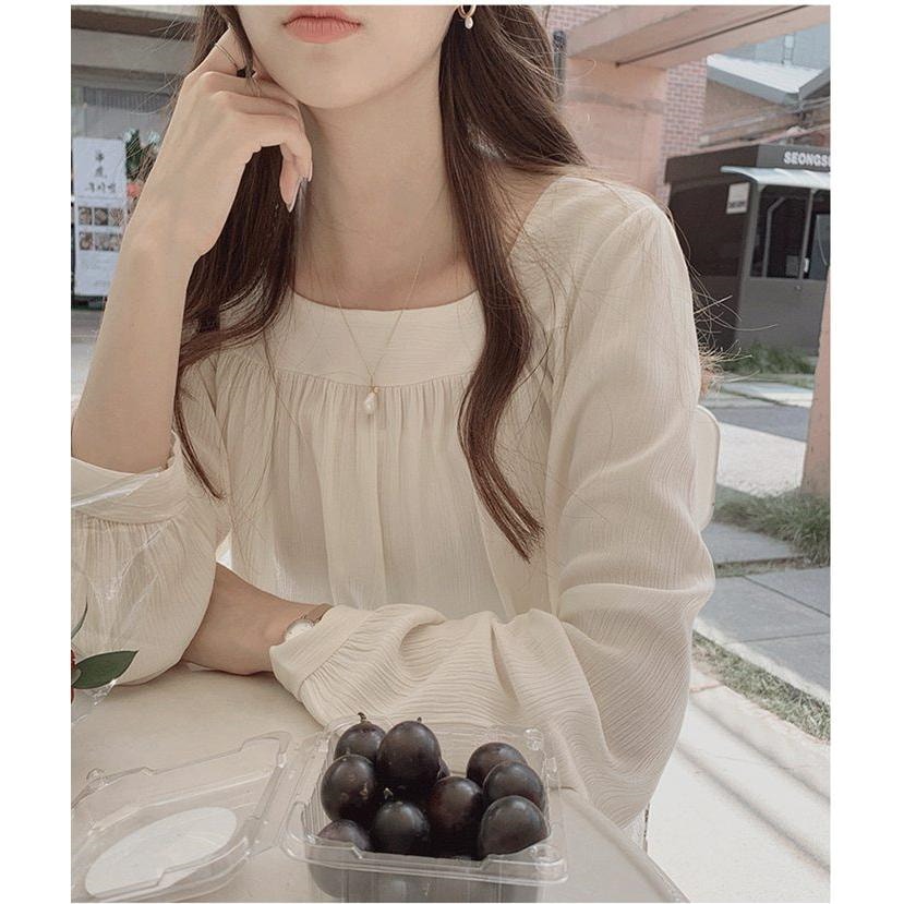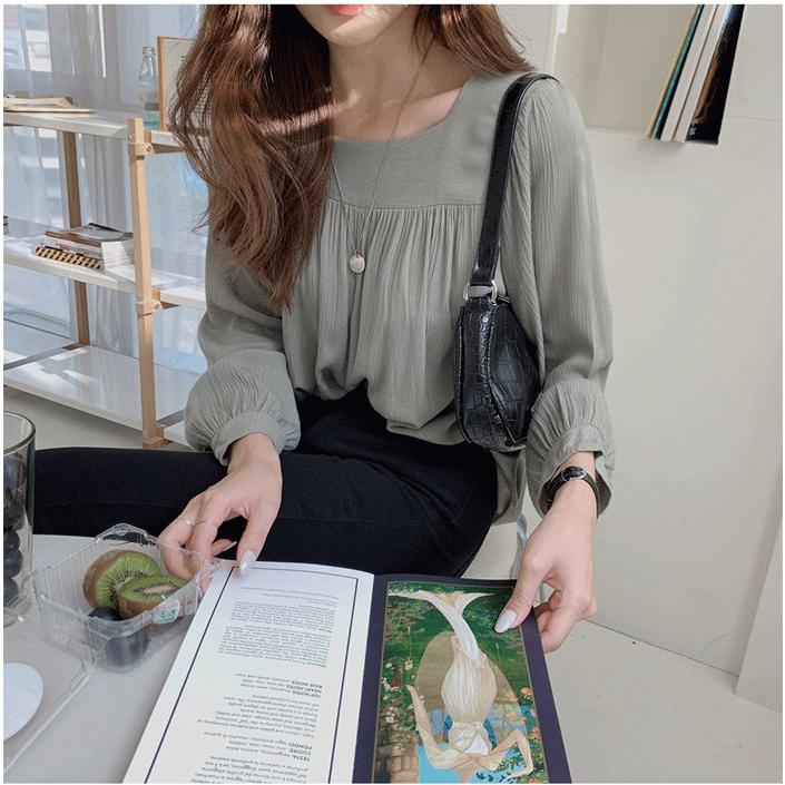 ブラウス レディース シャツ スクエアネック プルオーバー ギャザー 長袖 無地 楊柳ブラウス トップス 通勤 オシャレ 大人 Tシャツ カットソー