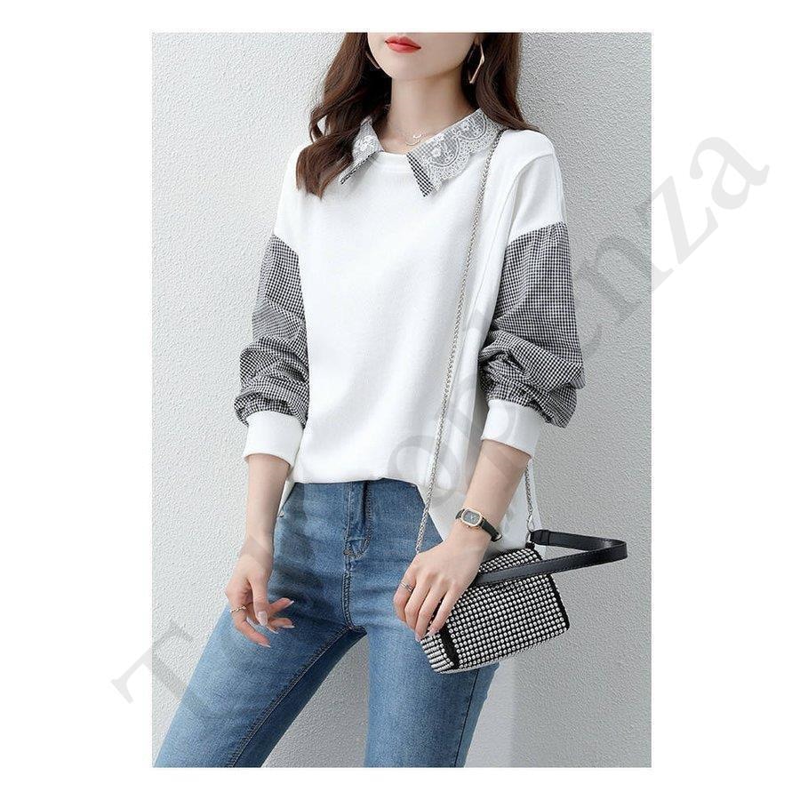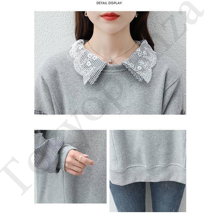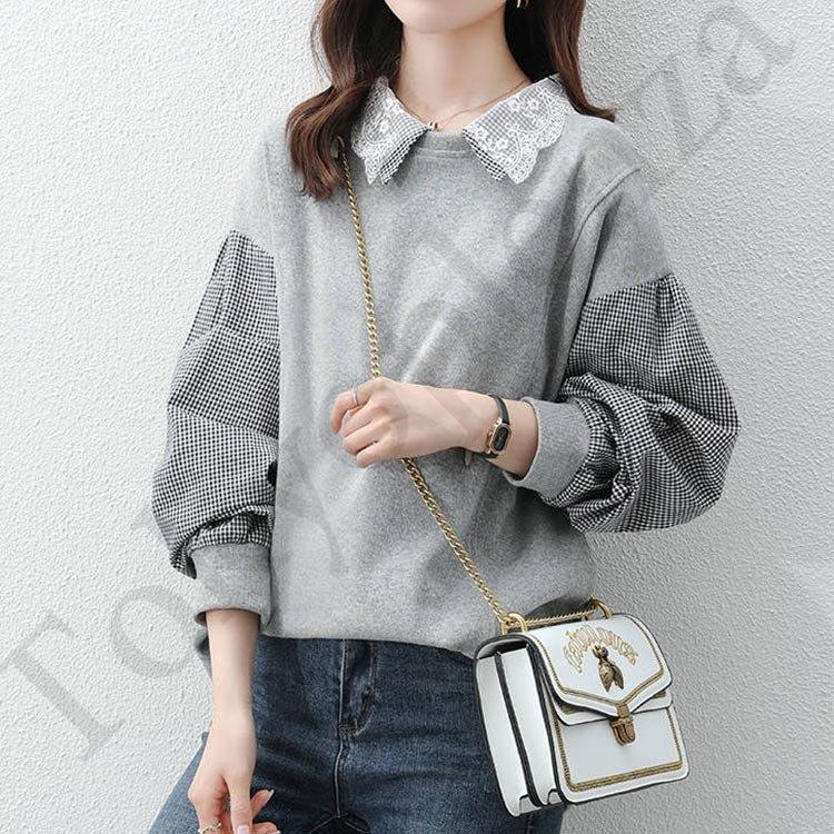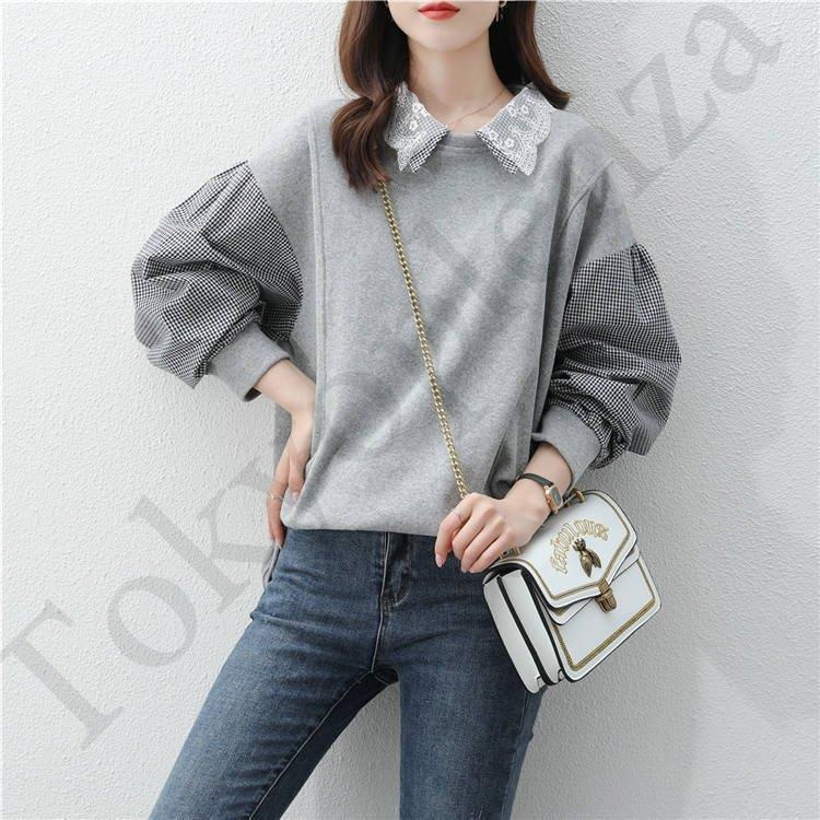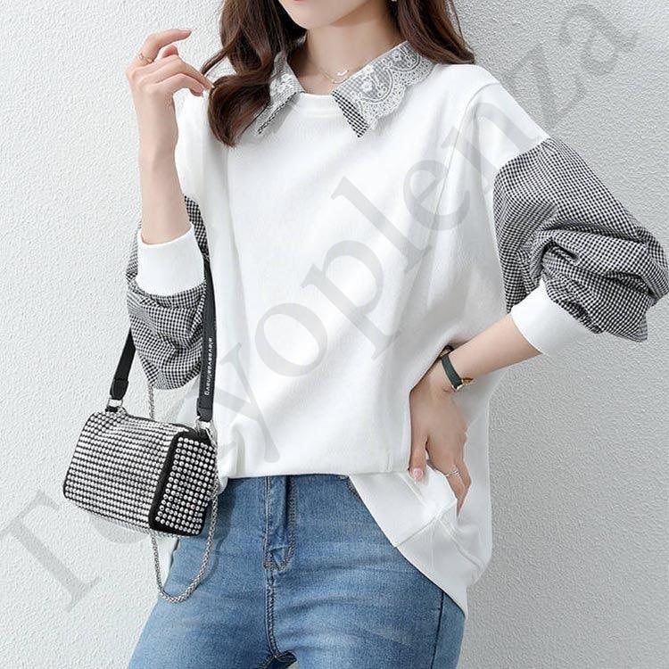 スウェット パーカー レディース 30代40代 秋 長袖 切り替え トップス チェック プルオーバー パーカー カジュアル 大きいサイズ 着痩せ