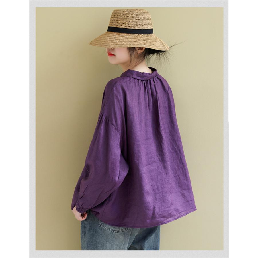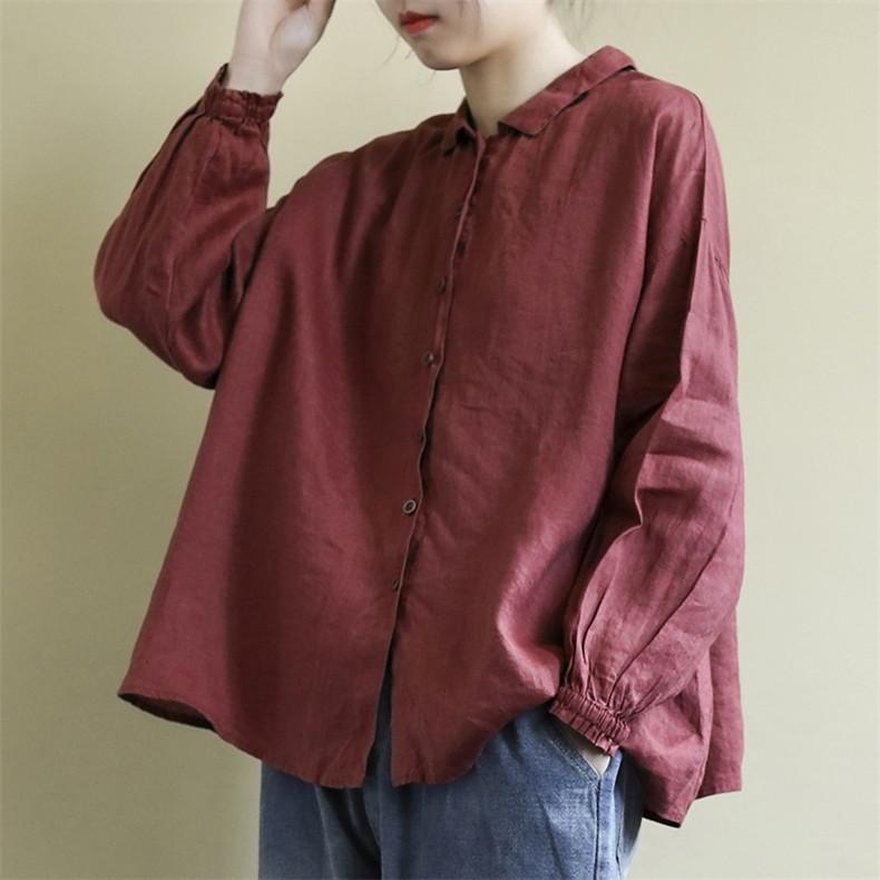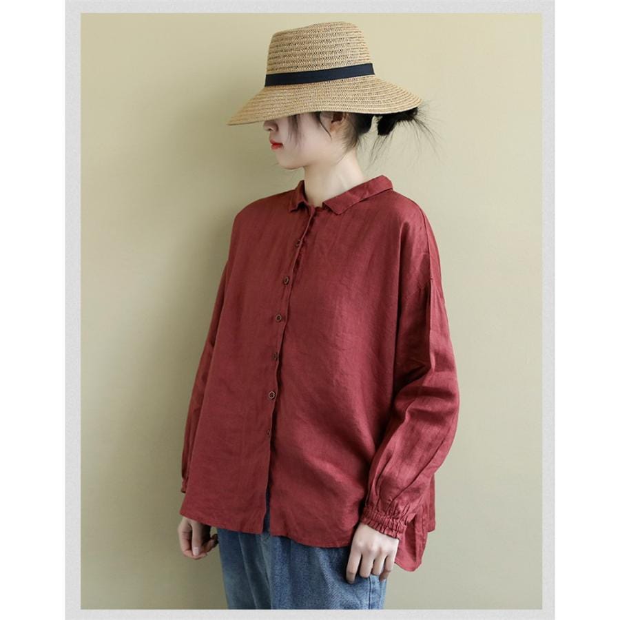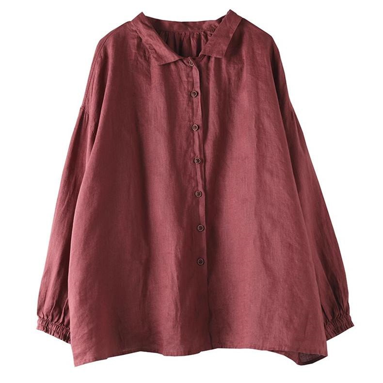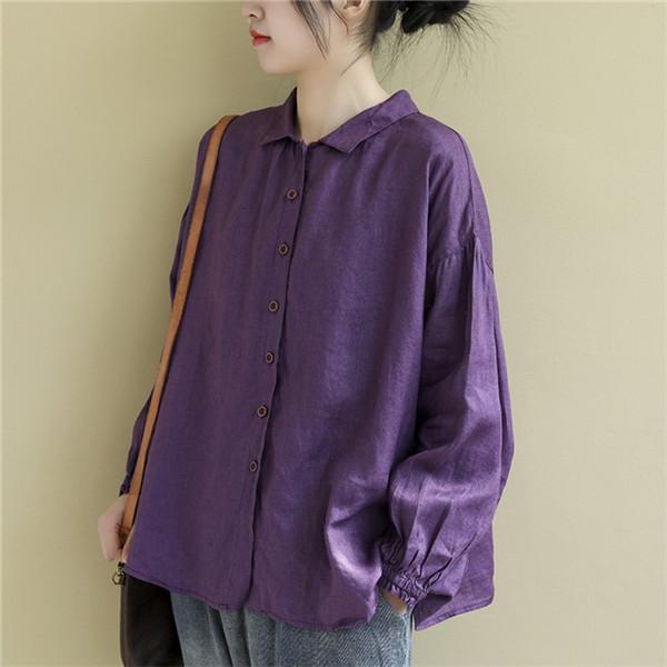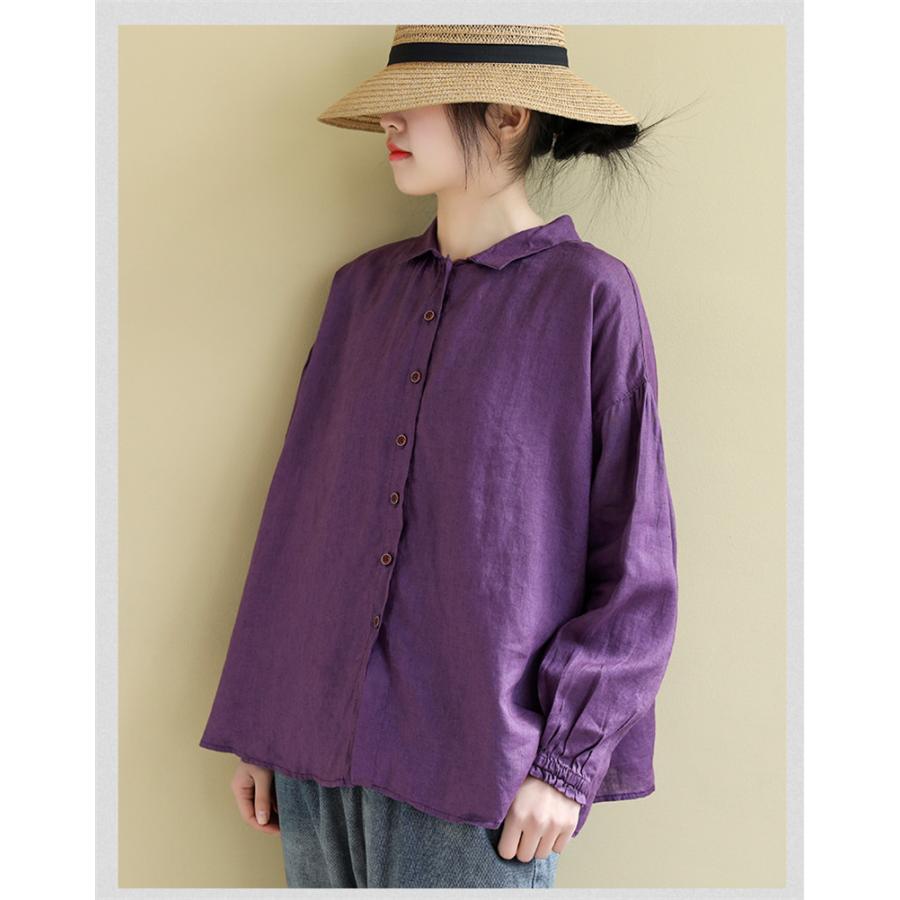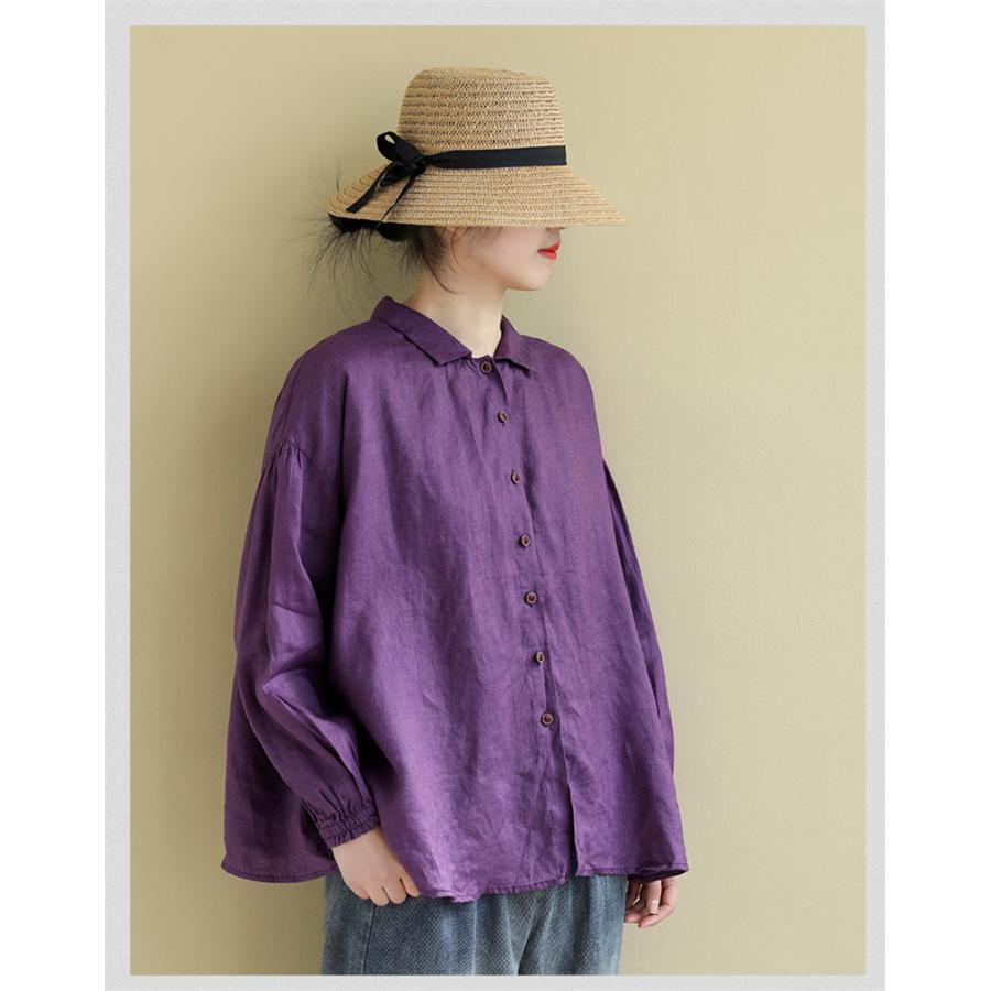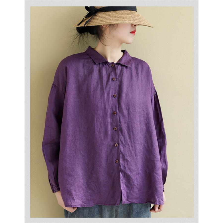 春新作 シャツ トップス レディース 折り襟 ボタン留め 綿麻 長袖 自然に体型カバー すっきりとした旬スタイル 人気アイテム 大きいサイズ ラフな風合い