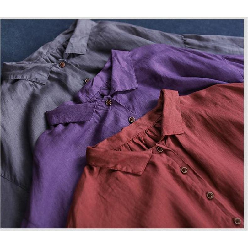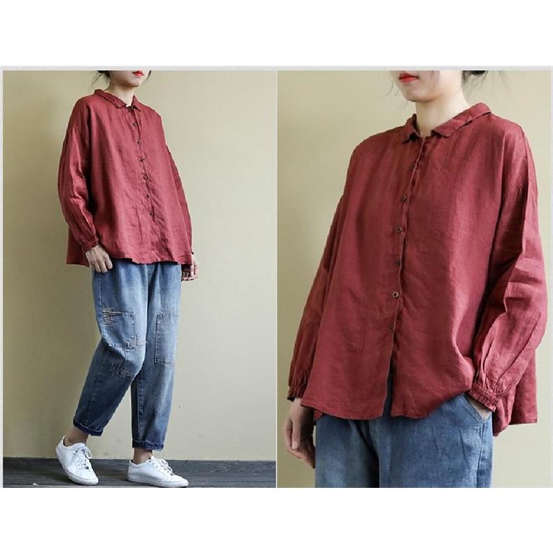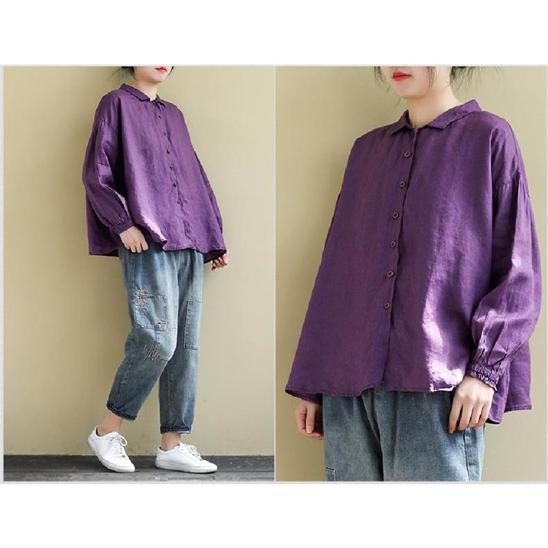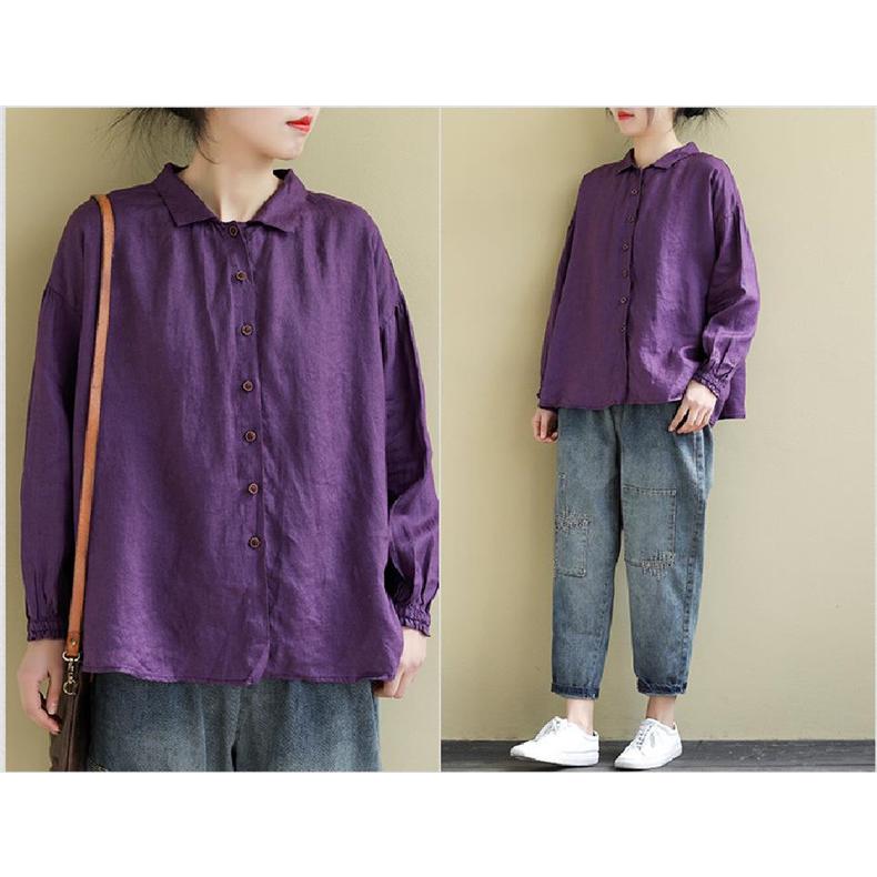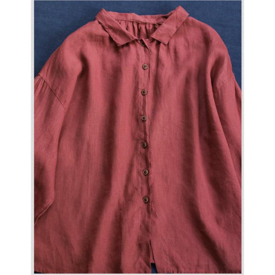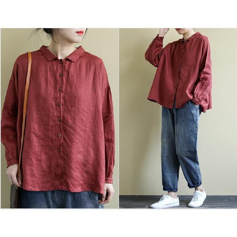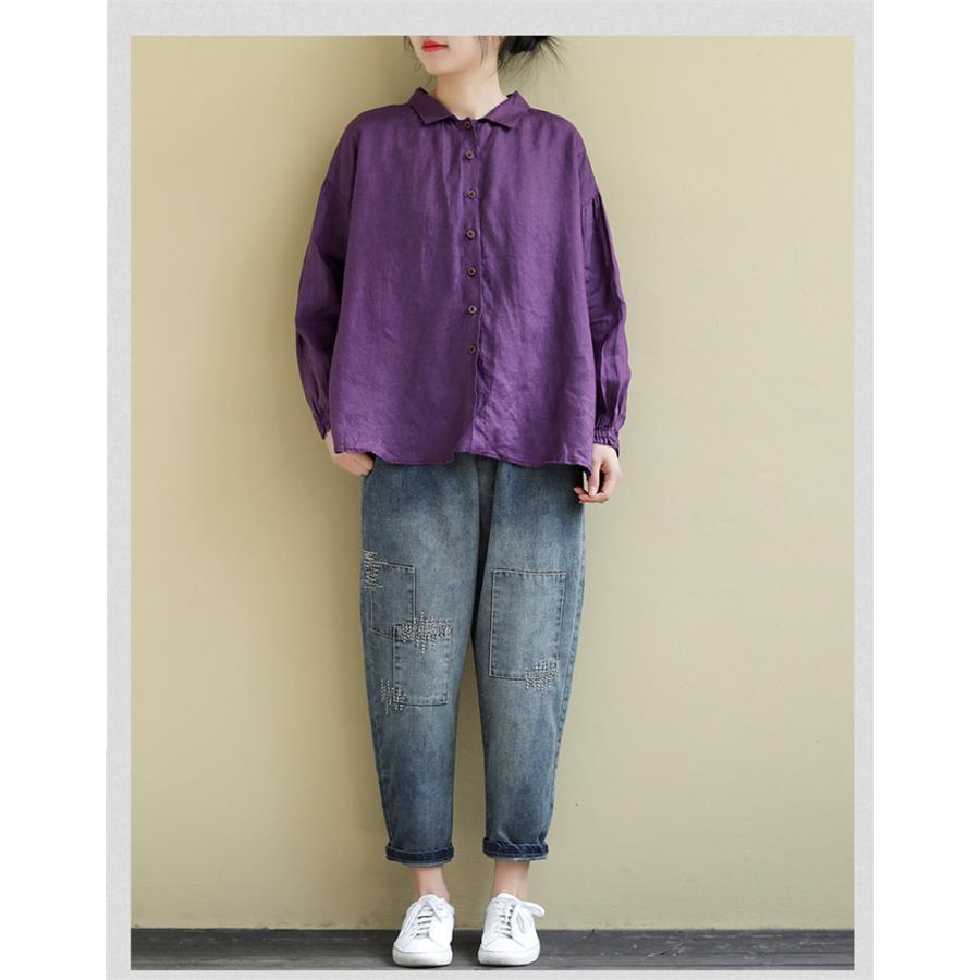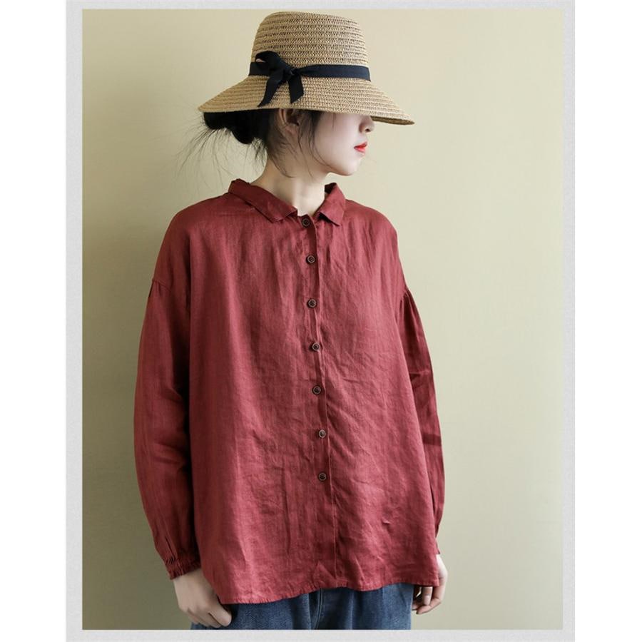 春新作 シャツ トップス レディース 折り襟 ボタン留め 綿麻 長袖 自然に体型カバー すっきりとした旬スタイル 人気アイテム 大きいサイズ ラフな風合い