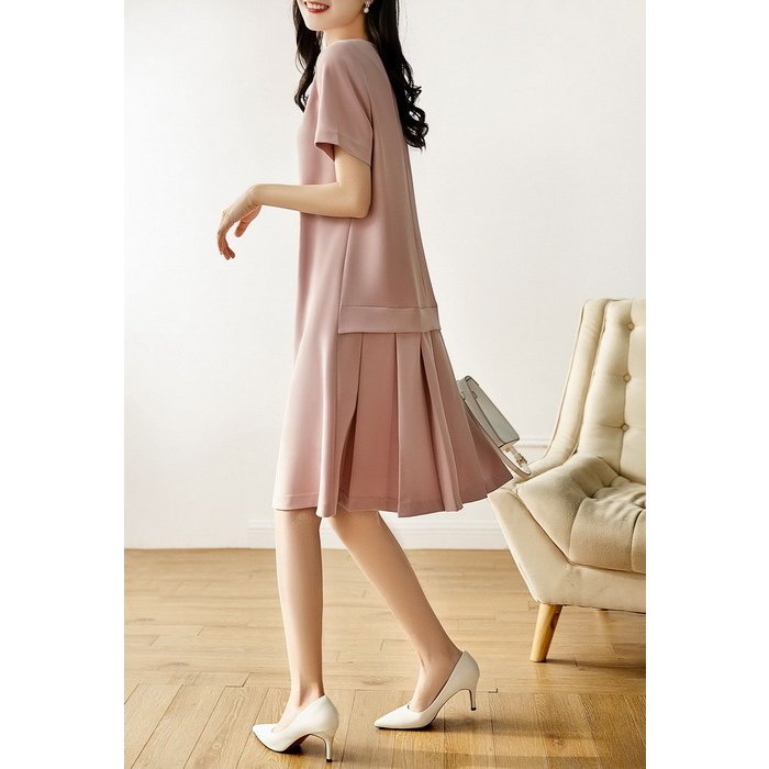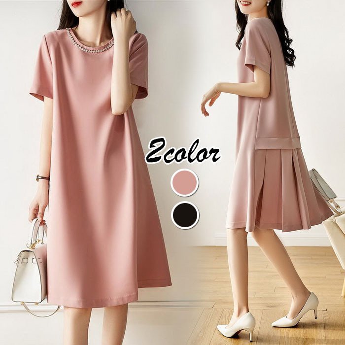 ワンピース レディース 40代 膝丈ワンピース 春夏 半袖 シフォンワンピース きれいめ 無地 切り替えプリーツスカート 上品 オシャレ結婚式ドレス 通勤OL 30代