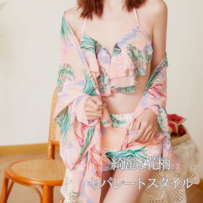 水着 レディース 体型カバー3点セット ワンピース水着 セパレート ママ水着 フリル 花柄 スカート 細見え ぽっちゃり ブラック かわいいピンク ブラック ガーリー フェミニン
