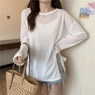 2025新作 韓国ファッション シンプル 轻薄 日焼け防止 UV 長袖 uvカット アームカバー シャツ ブラウス