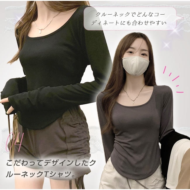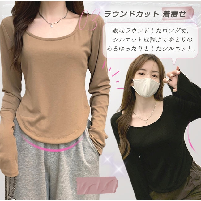 ロイヤル クルーネック カットソー 着痩せTシャツ インナー ラウンドカット レイヤード 重ね着 レディース 長袖 トップス おしゃれ 薄手 無地 柔らかい OL 通勤 オフィス 体型カバー