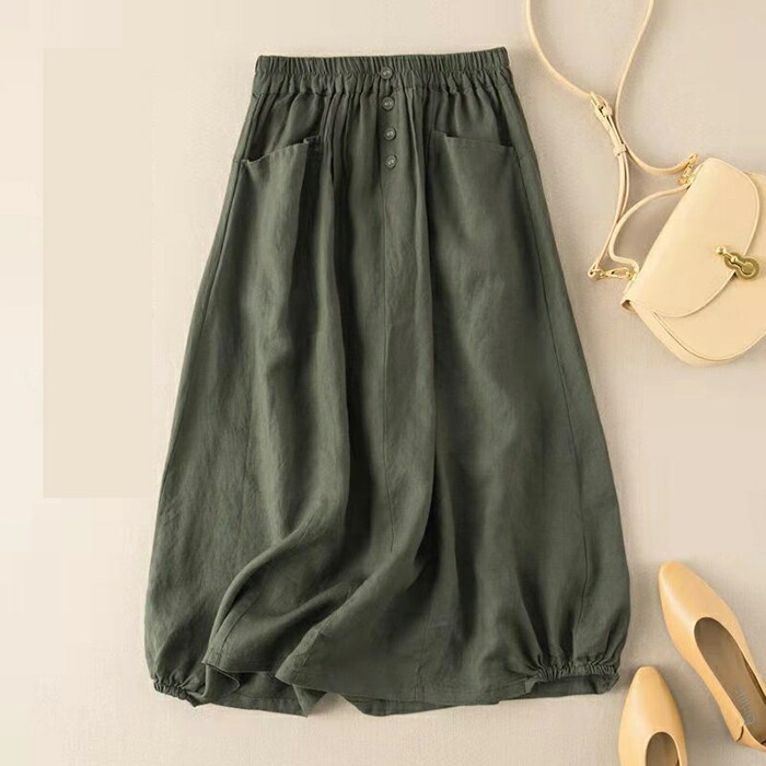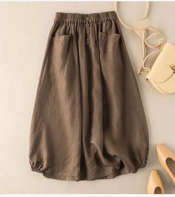 スカート ロング レディース 黒 バルーンスカート フレアスカート フレア ボトムス ロングスカート 綿麻風 ミモレ丈 ナチュラル おしゃれ エスニック ポケット付き ファッション シンプル きれいめ