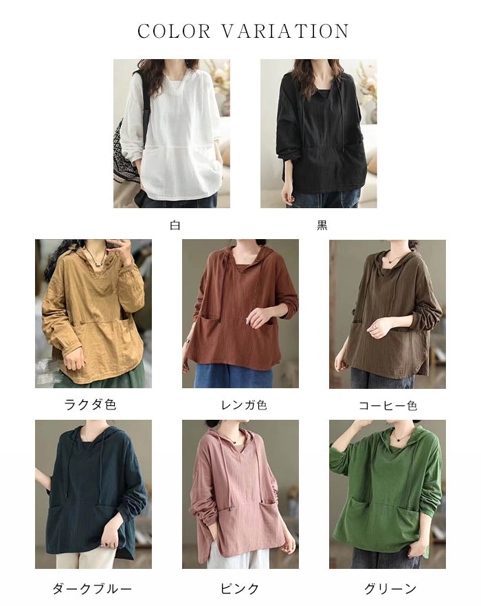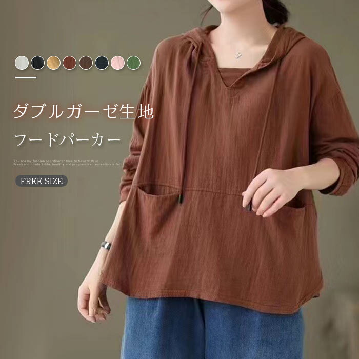 パーカー ガーゼ tシャツ レディース 長袖 フード付き 綿 Tシャツ トップス レディース シンプル 長袖tシャツ カジュアル 春秋 着回し 大人 長袖 レディース 定番 無地 秋 春 体型カバー