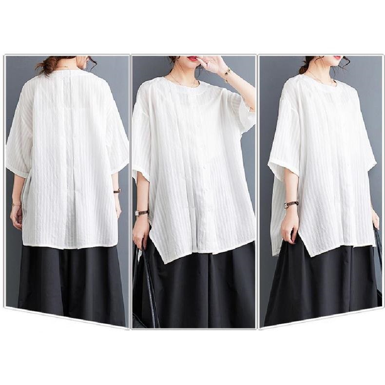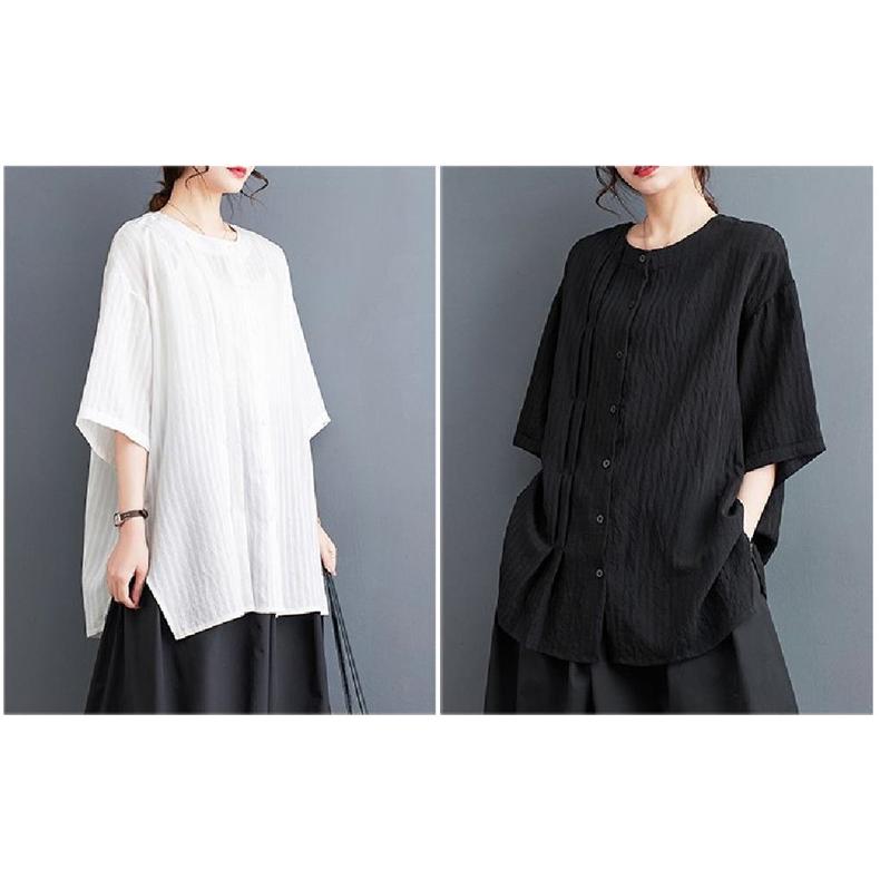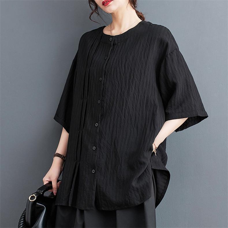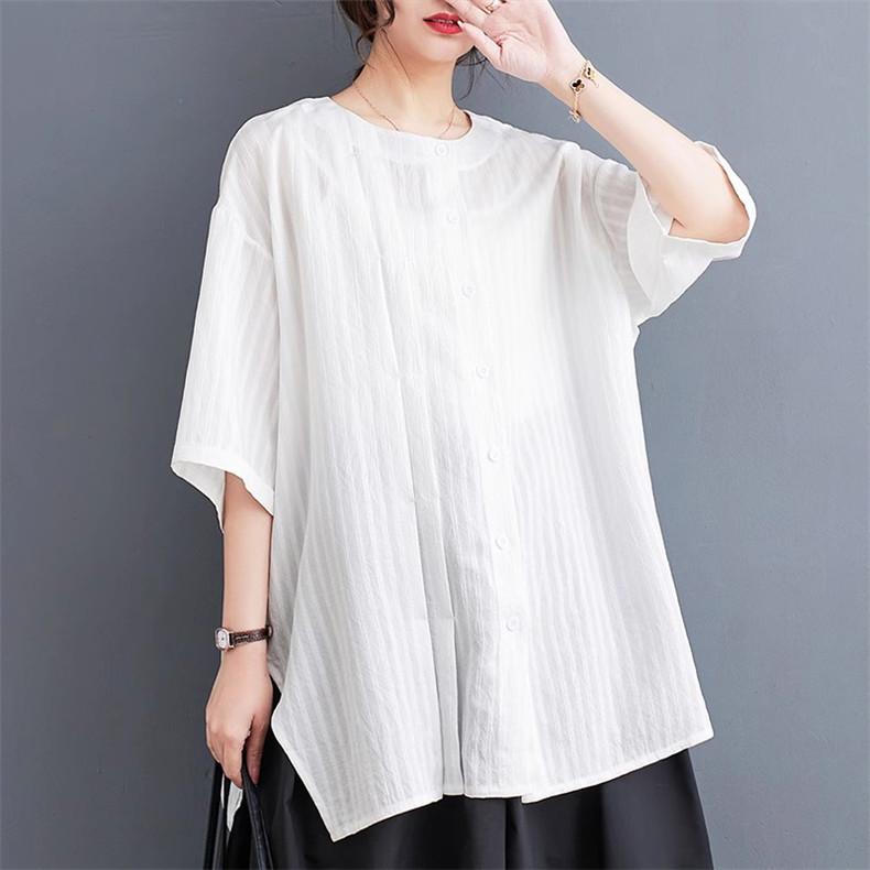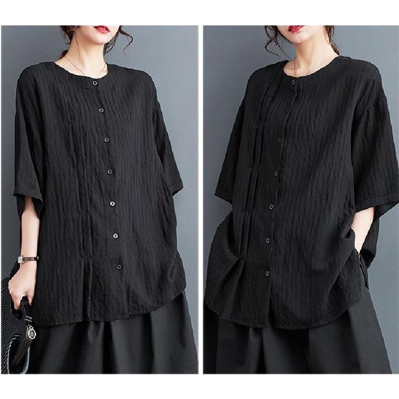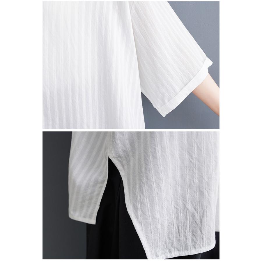 春 シャツ ブラウス トップス レディース 自然に体型カバー 大人カジュアル 5分袖 無地 大きいサイズ ベーシック 爽やかで上品 いろんな着こなしが楽しめる