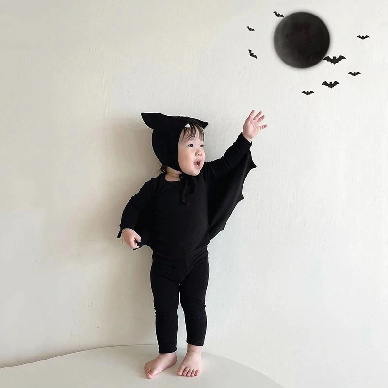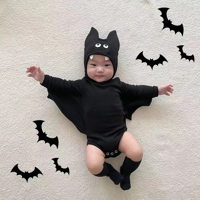 ハロウィン ベビーお揃い男の子女の子ロンパース長袖黒コウモリお化け ハロウィン