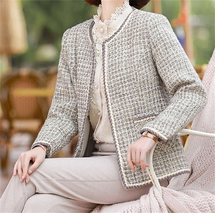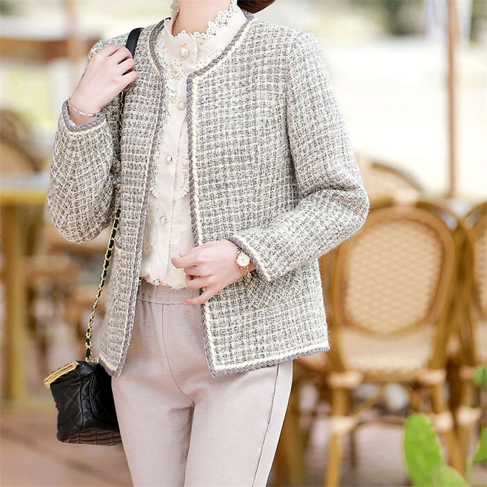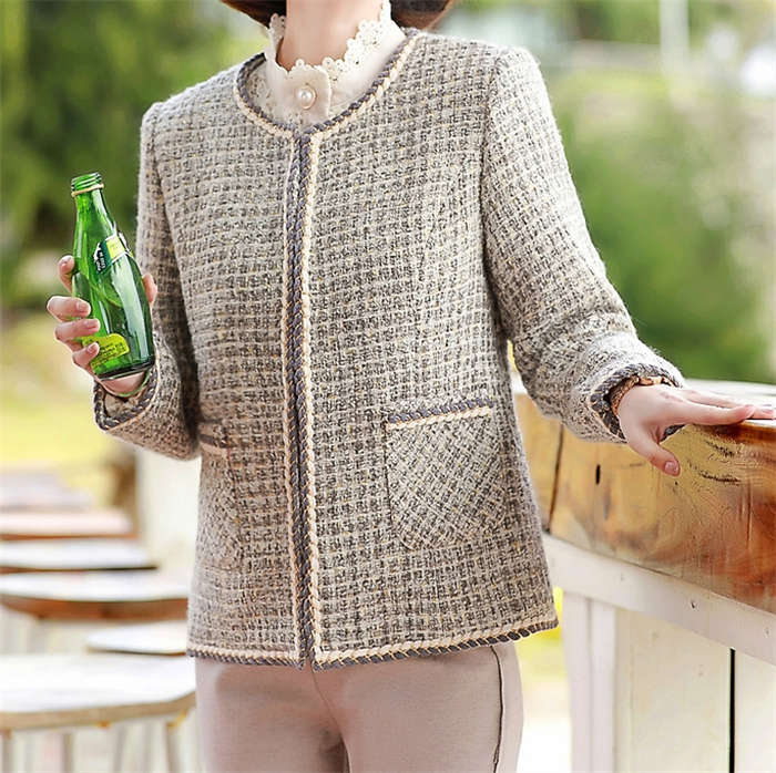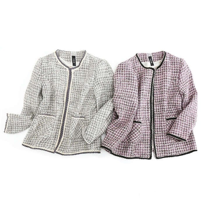 ツイードジャケット ジャケット レディース 春秋 フォーマル ショート丈 カジュアル ノーカラージャケット アウター ママスーツ ノーカラー ツイード 春 秋 大きいサイズ 隠れボタン 裏地付き 長