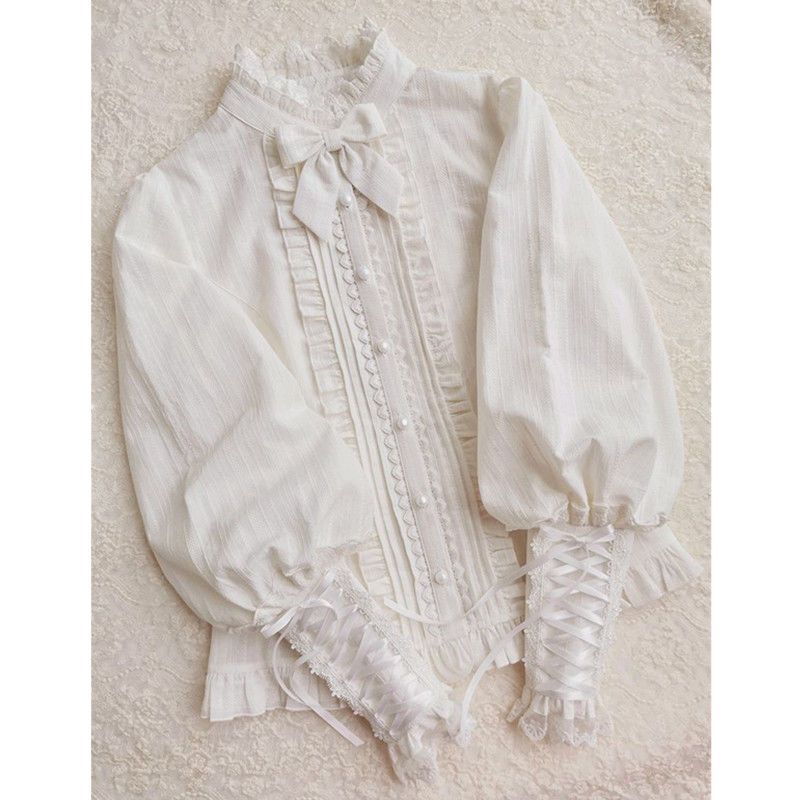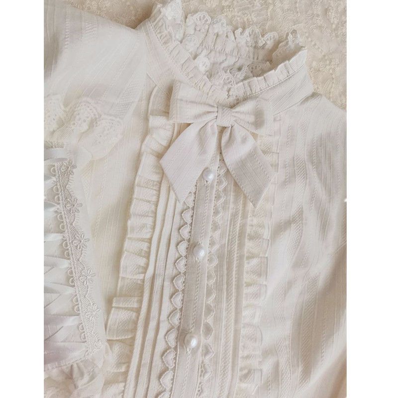 Qoo10限定 シャツ t コスプレ ロリータ ブラウス レディース マトンガールのロリータ風春脚フリルレースロリータ長袖ジャガードシャツ和風