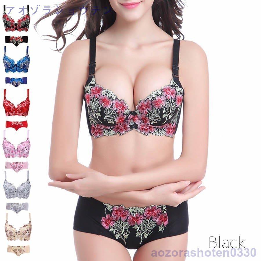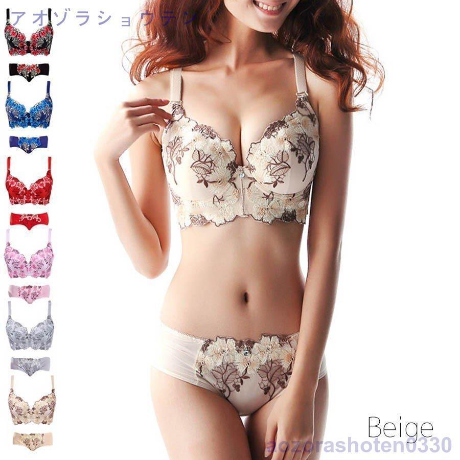 ブラジャー ショーツセット 脇肉スッキリ ブラショーツセット 3 4カップ 上下セット 谷間UP 盛れる 楽ブラ つけ心地 寄せて上げる ブラ&ショーツ上下セット