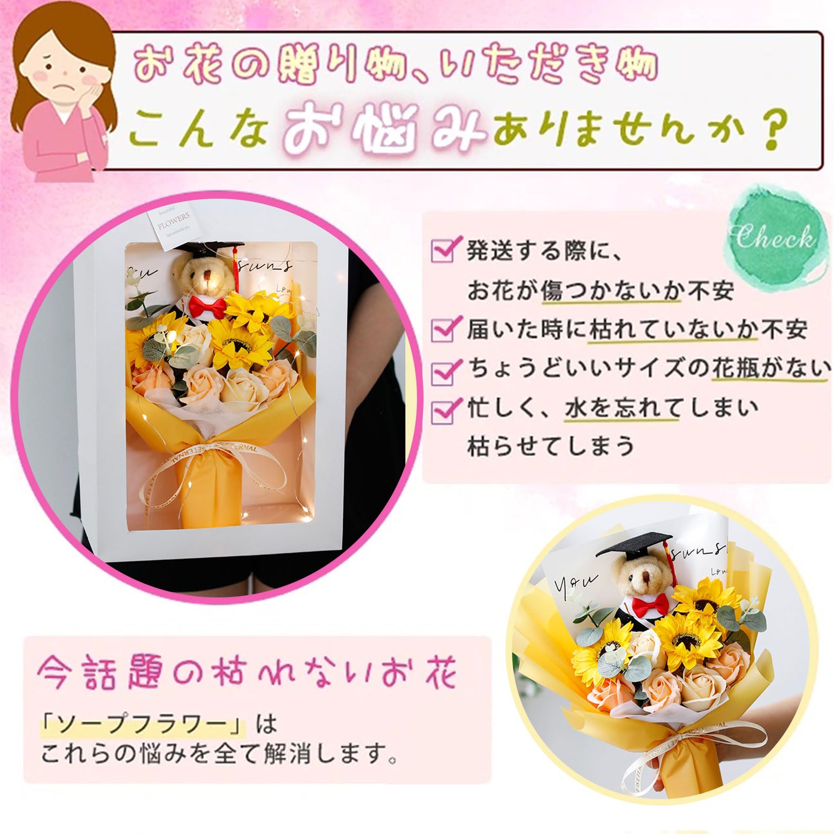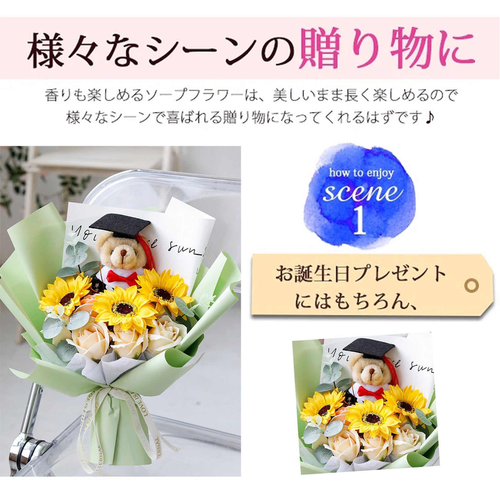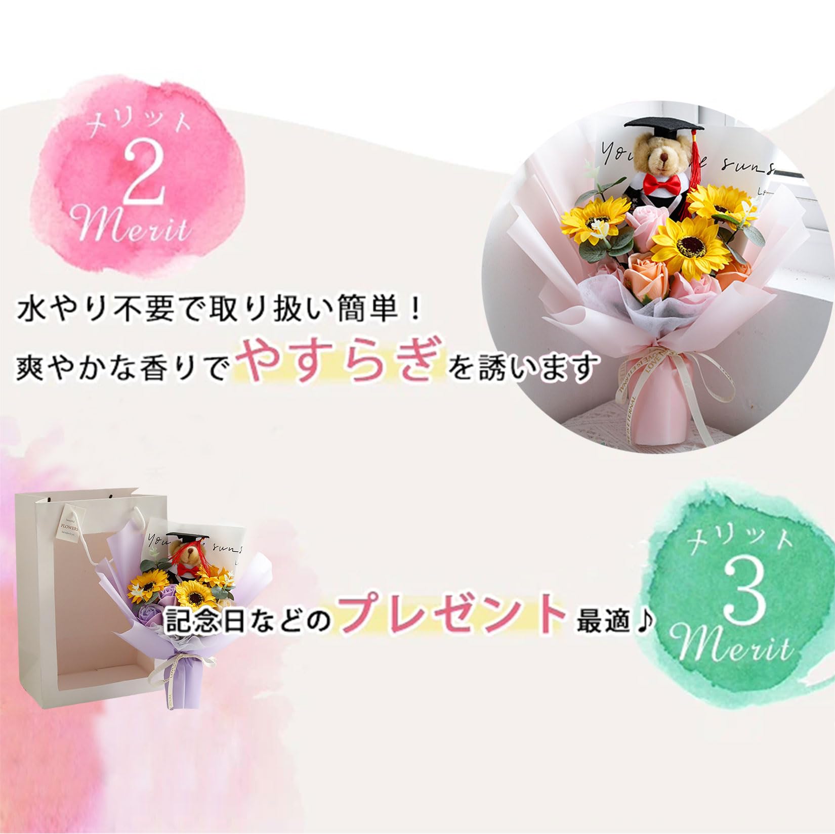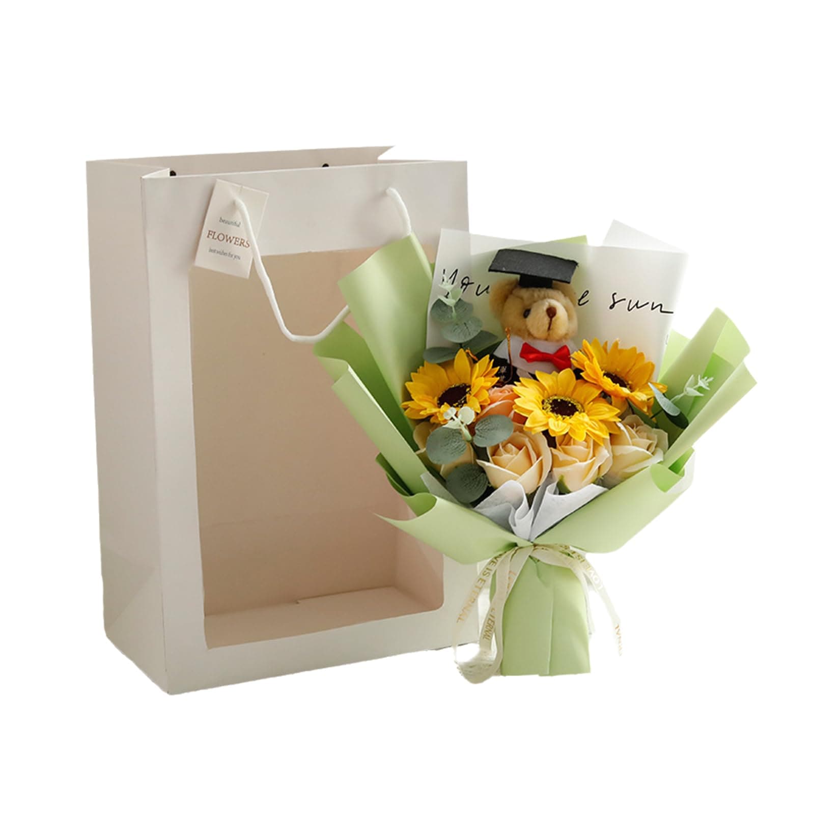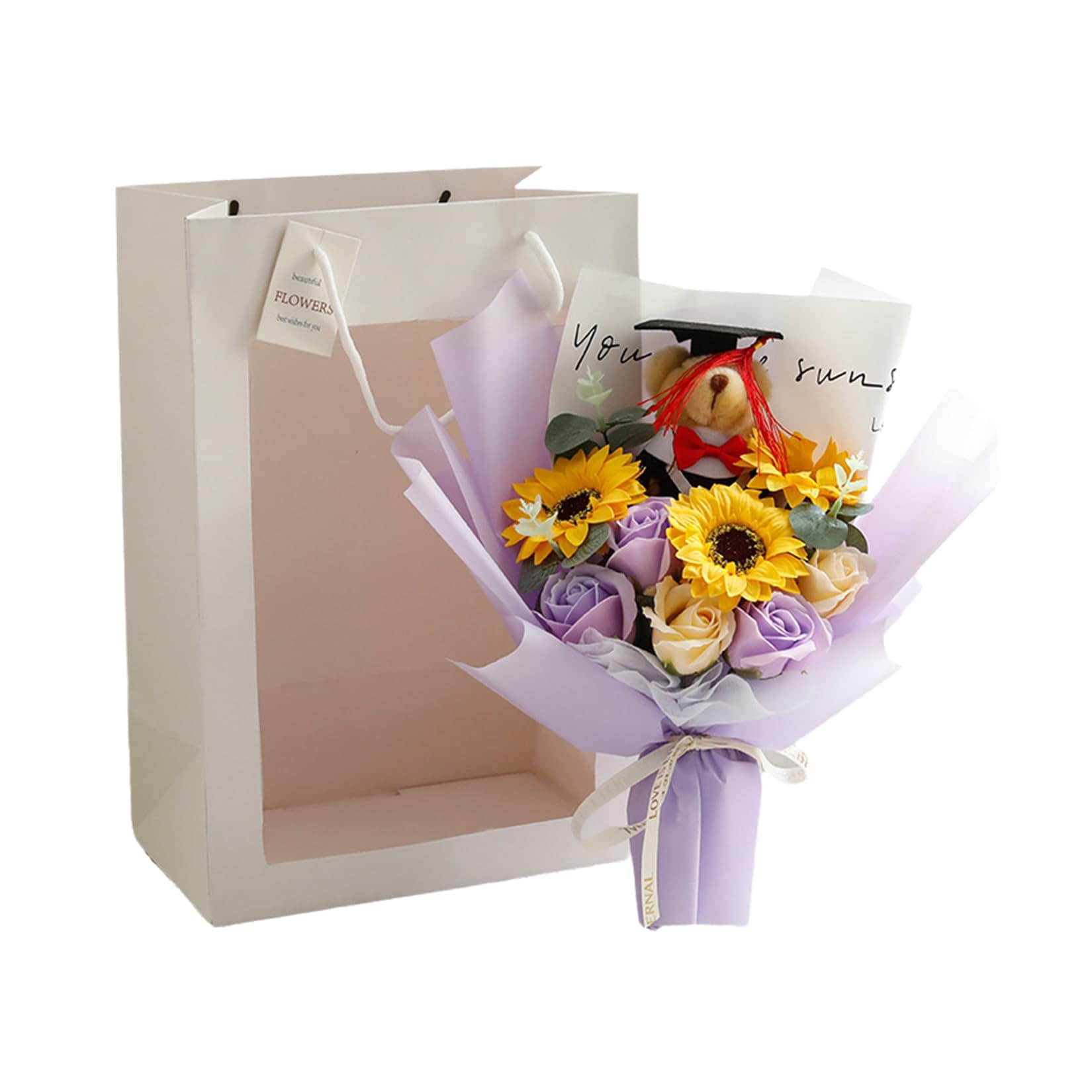 入学式 卒業式 ギフト ぬいぐるみ 花束 向日葵 クマ 手提げ袋 枯れない花 ブーケ 枯れない花 花束