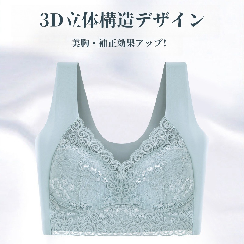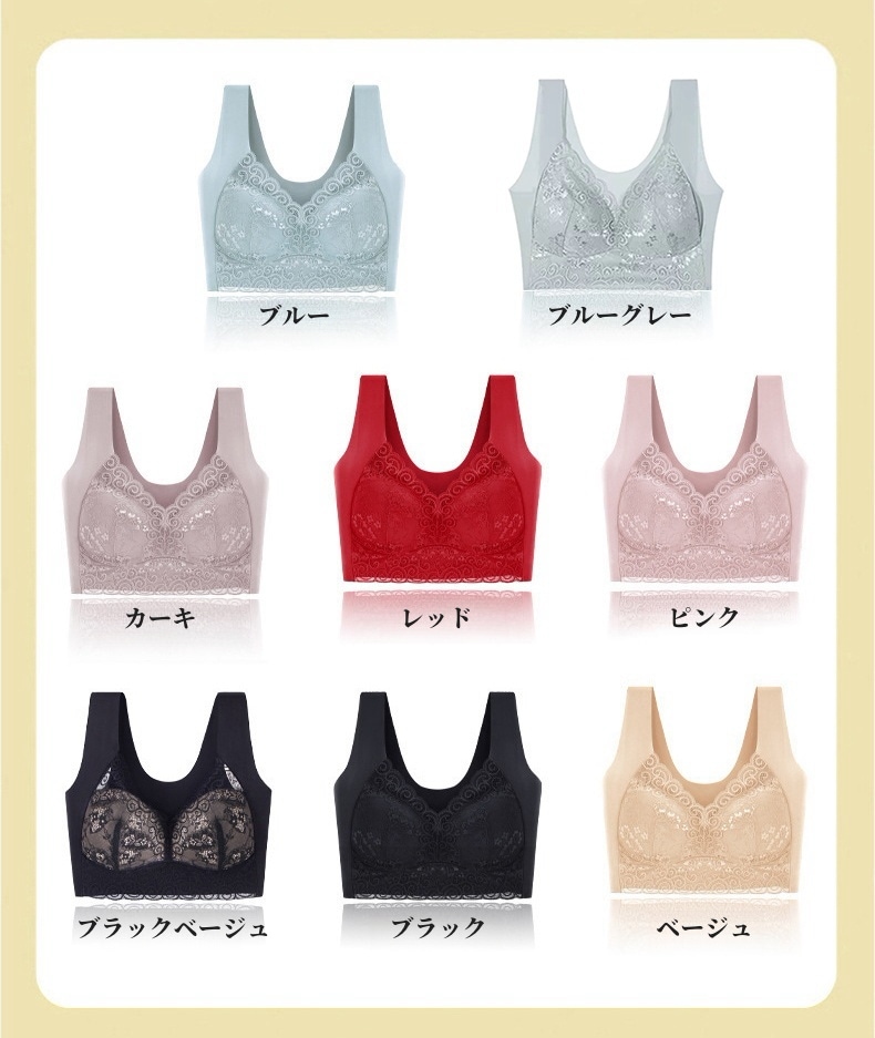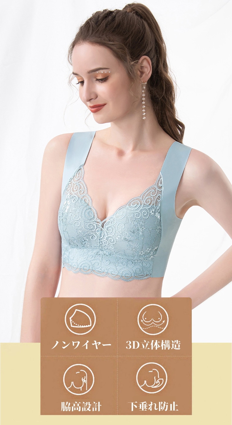 2枚組 ノンワイヤーブラ レディース シームレス ナイトブラ 脇高 ブラジャー 下着 レース 通気性 大きいサイズ スポーツブラ 伸縮性 インナー 美胸 フィット感