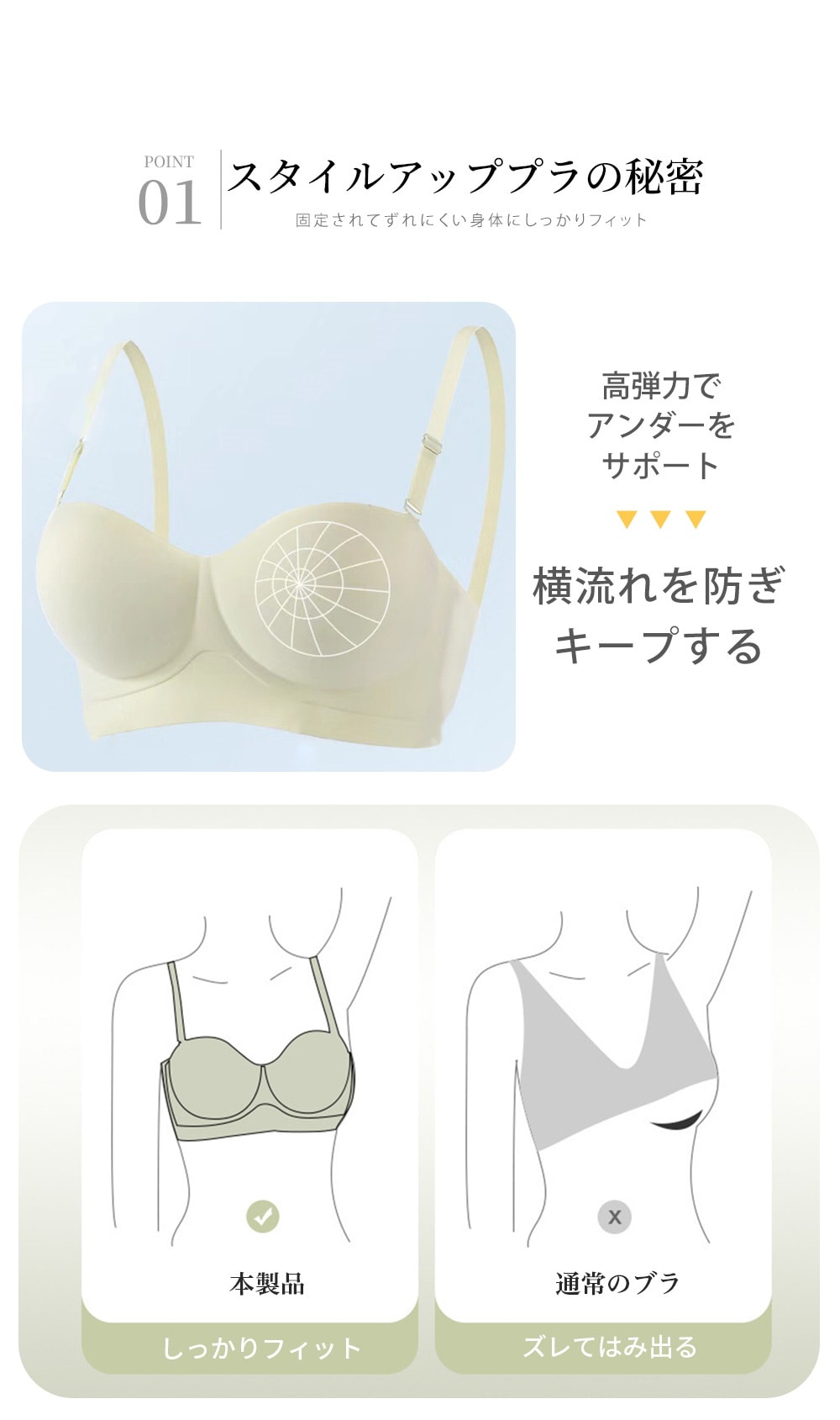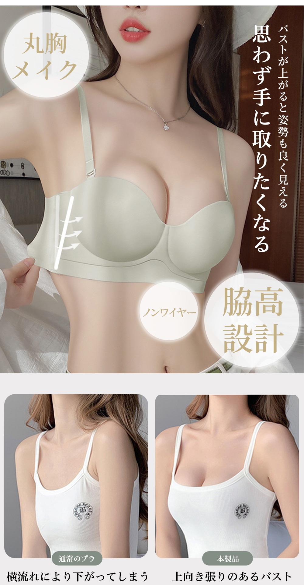 スタイルアップブラ 下着 ブラジャー レディース ノンワイヤー ワキ肉 紐無しストラップレス 対応 大きいサイズ 盛れる もちもち シンプ