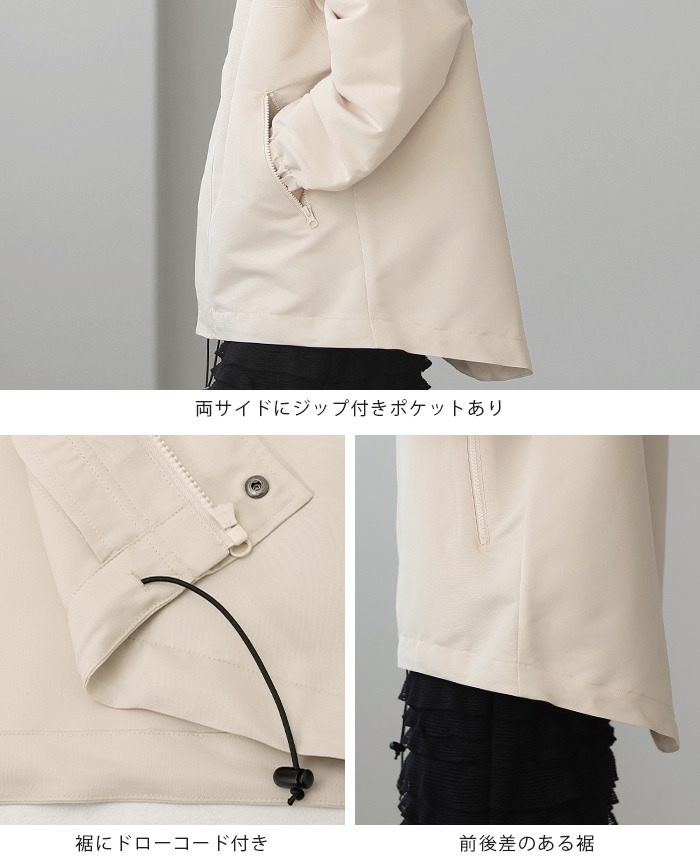 裾はドローコード付きで、気分に合わせてシルエットが変えられます。