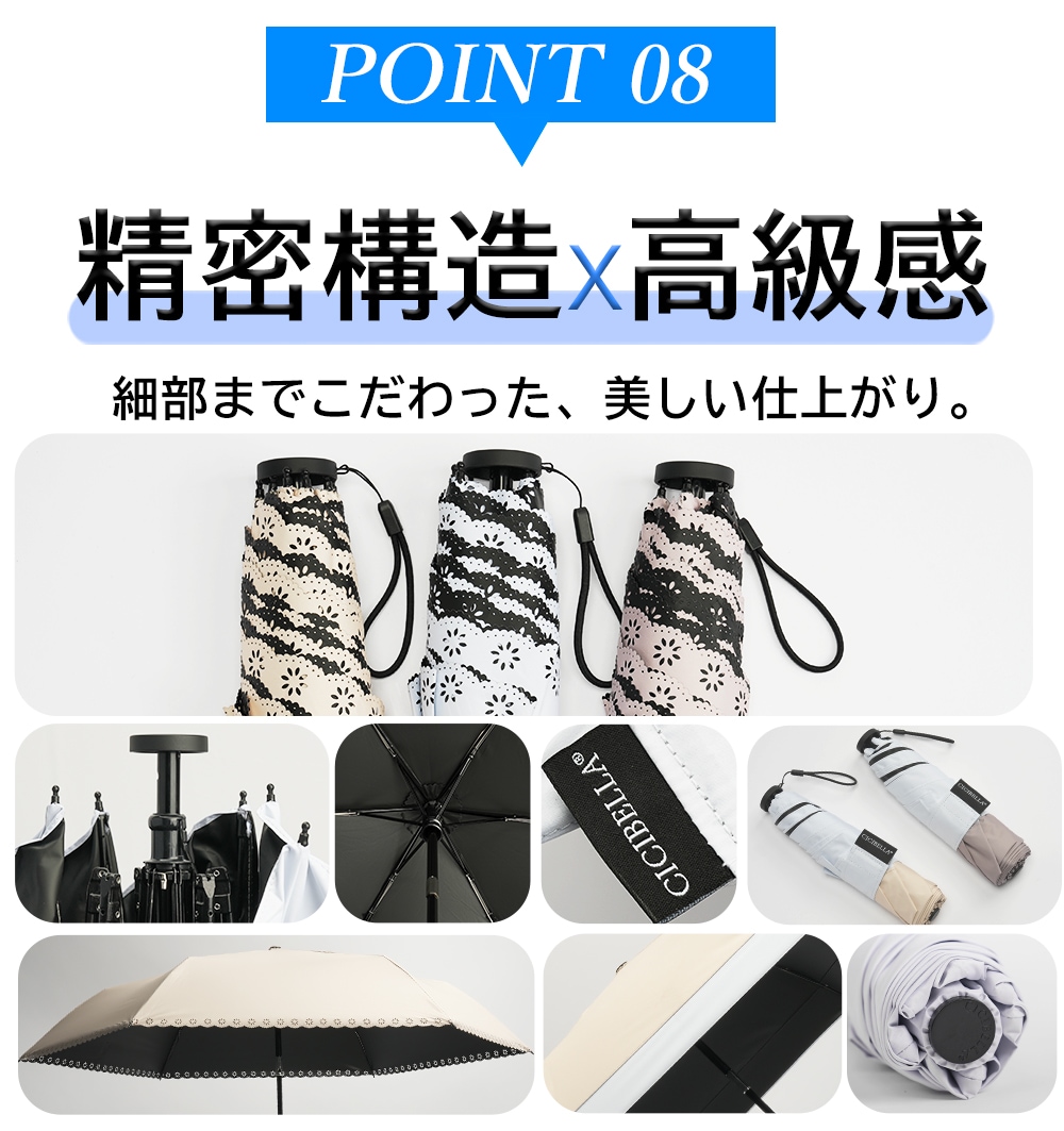 CICIBELLA 日傘 2025版 晴雨兼用 折りたたみ日傘 軽量 遮光率99% 遮熱 風に強い日傘 丈夫 通勤 紫外線対策 海辺用 夏フェス 紫外線対策 梅雨 プレミアム 日傘
