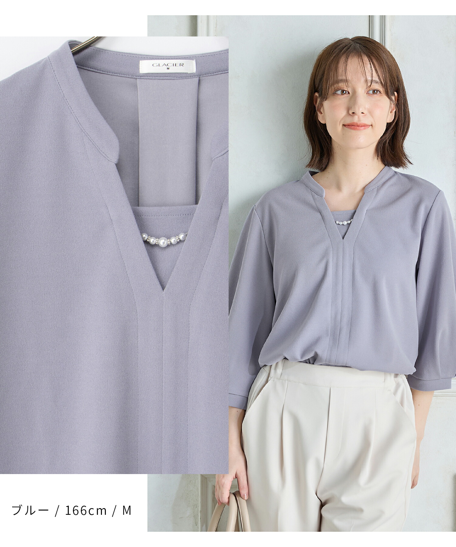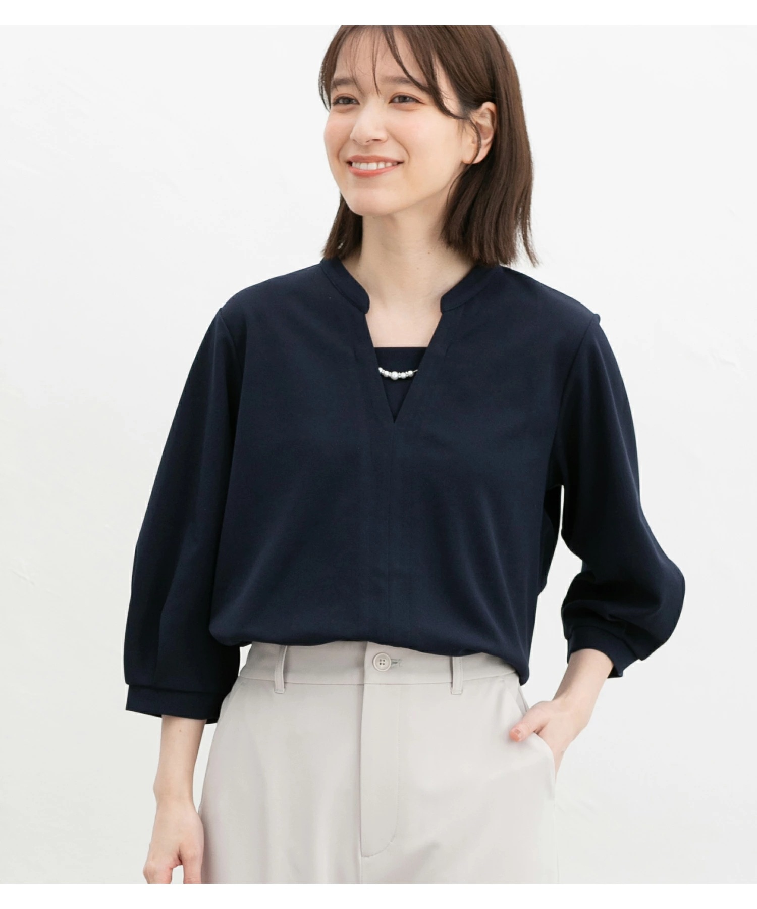 Honeys 7分袖アクセ付トップス トップス カットソー アクセ付トップス ハニさら 大きいサイズ オフィス Tシャツ カットソー