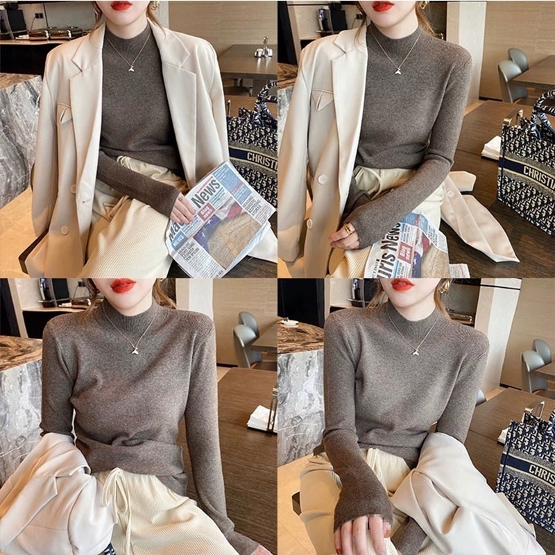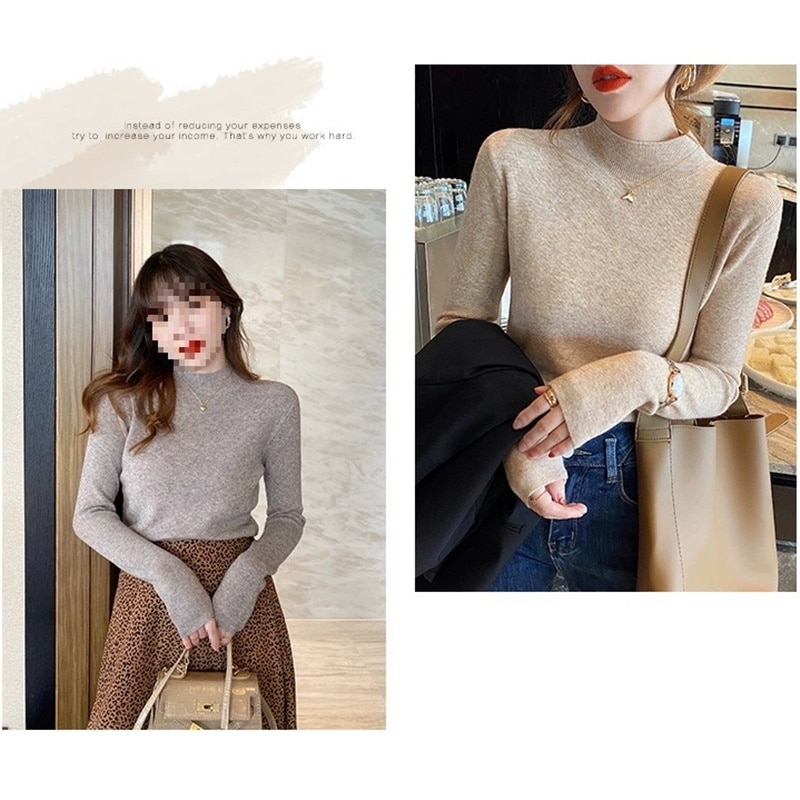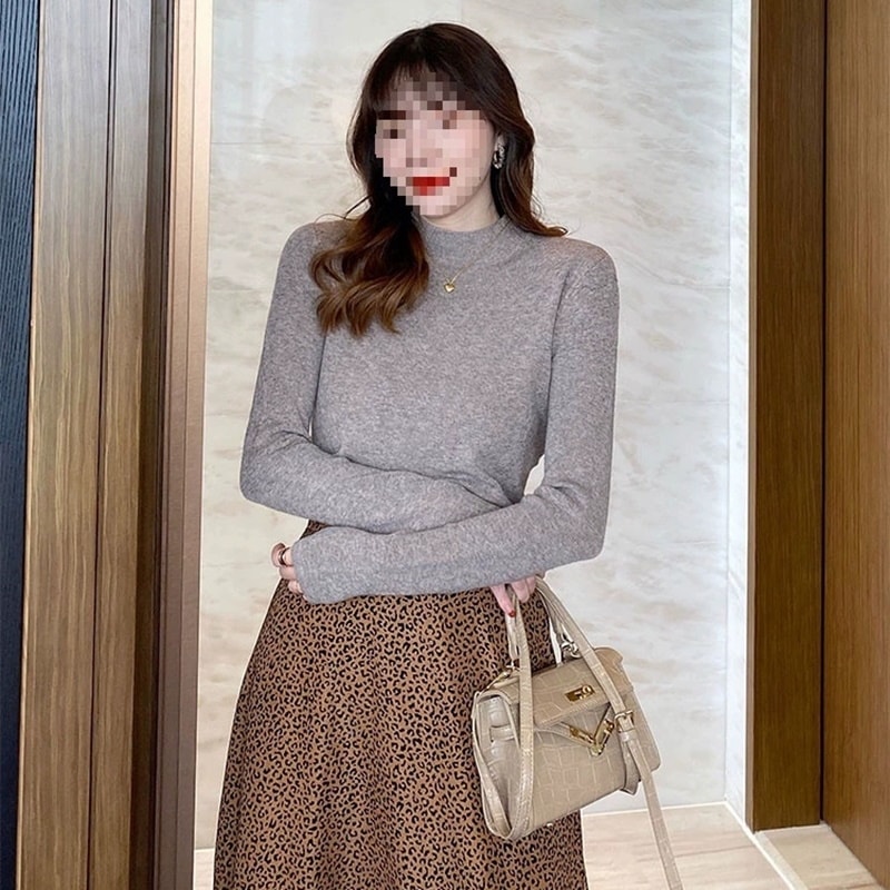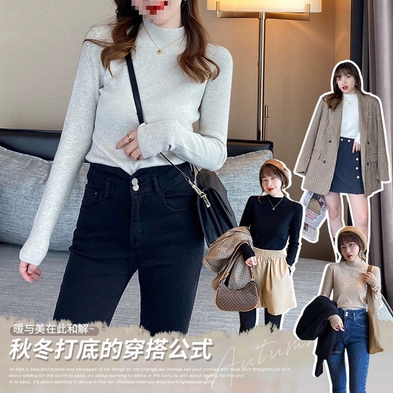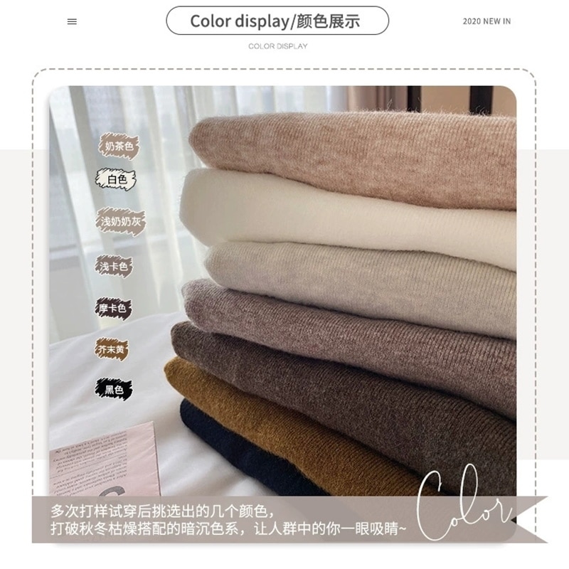 韓国人気商品ハイネックニット着るだけモテニット 女性服セーター ハイカラー大サイズ無地厚手シャツルーズレイジーウーセーター