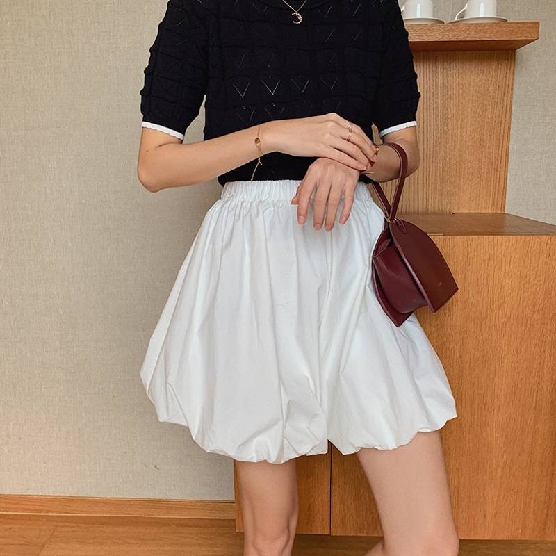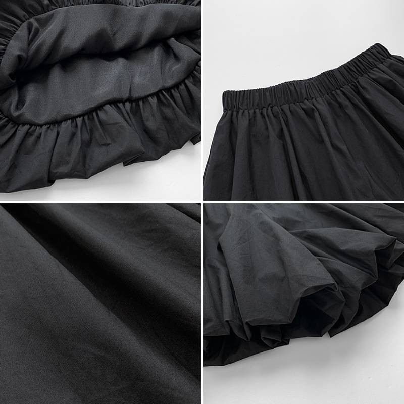 ボトムスショートパンツキュロットバルーンフレアパンツミニ丈体形カバーナチュラルリラックスウエストゴムプラスサイズボリュームキュートガーリーシンプル大人女子かわいいモダンレトロブラックホワイト