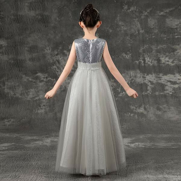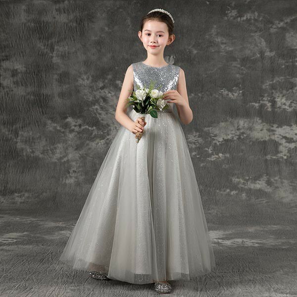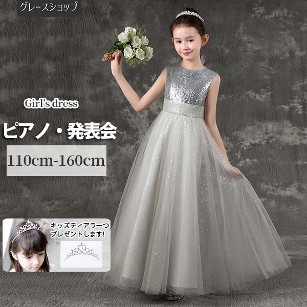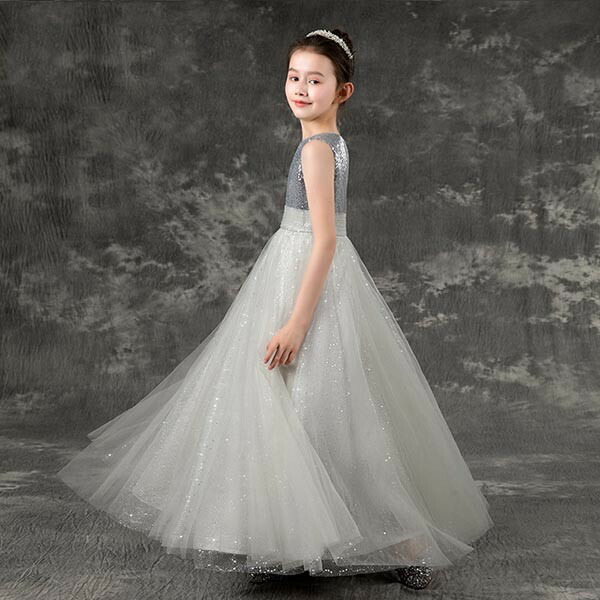 ピアノ発表会 ドレス 中学生 ワンピース ジュニアドレス 子供ドレス ノースリーブ グレー バイオリン 160 袖なしフォーマル用 ピアノコンクール 上品 エレガント 女の子 キッズドレス お姫様 演