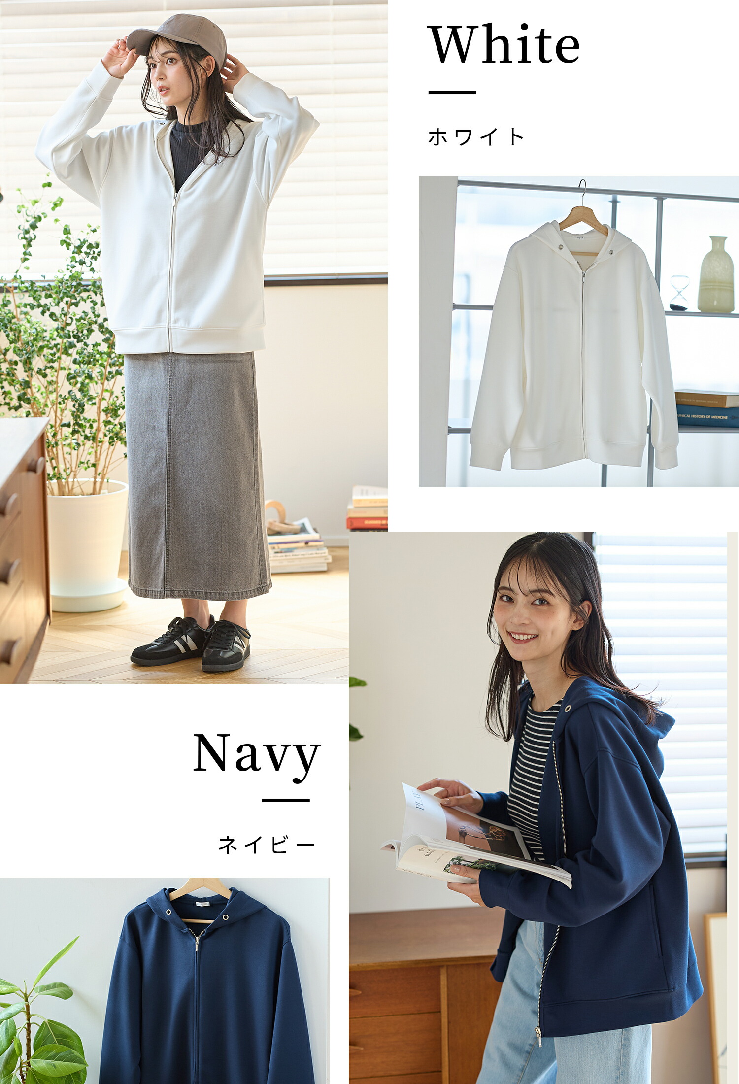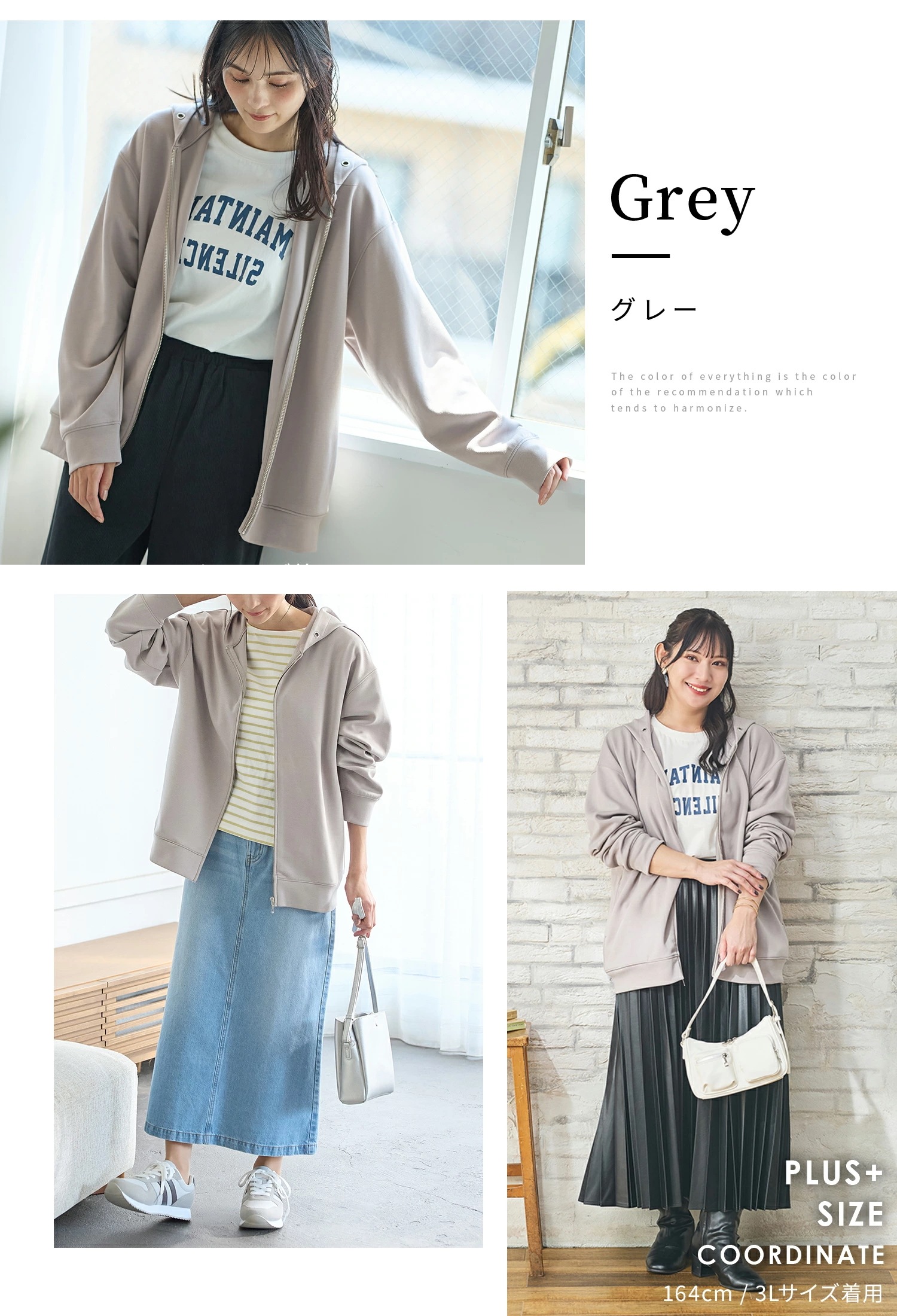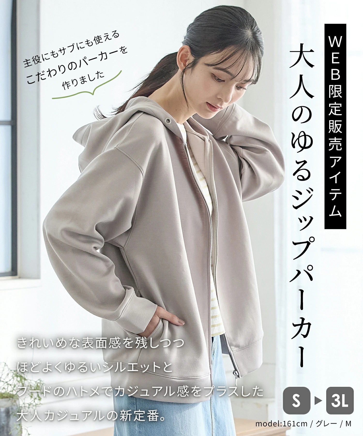Honeys 大人のゆるジップパーカー トップス スウェット 長袖 大きいサイズ パーカー パーカー