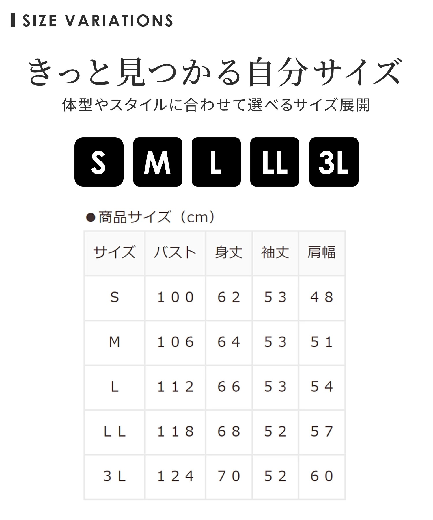 サイズ: S M L LL 3L
