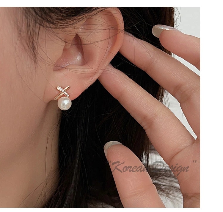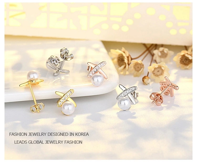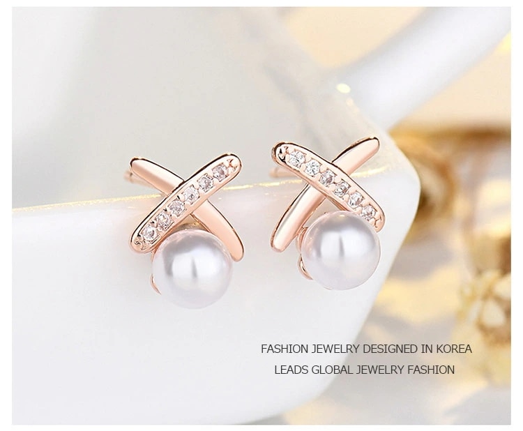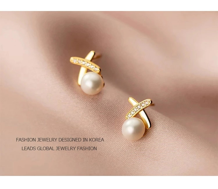 エフティービー ピアス レディース クロスパール K18仕上げ ピンクゴールド CZダイヤモンド 小粒パール アレルギー対応 母の日 ピアス
