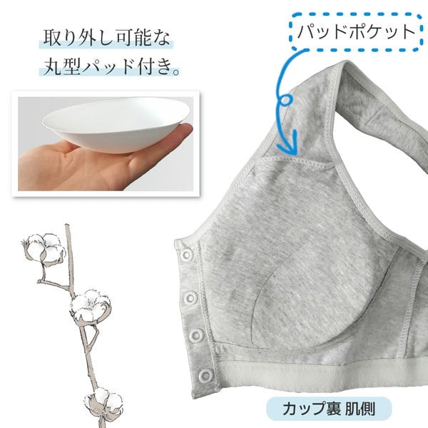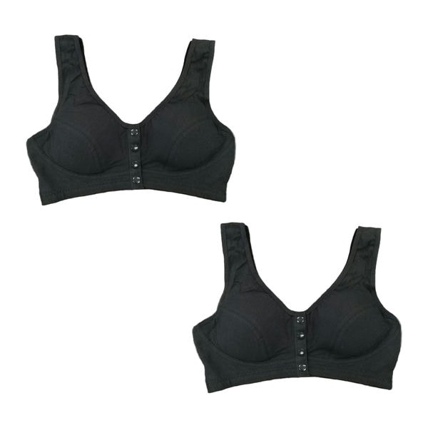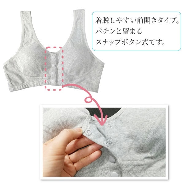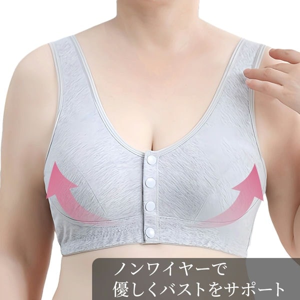 2枚セット ブラジャー フロントボタン 綿 コットン 前開き 取り外し パッド ノンワイヤー ナイトブラ レディース 授乳 就寝 黒 ピンク グレー 大きいサイズ
