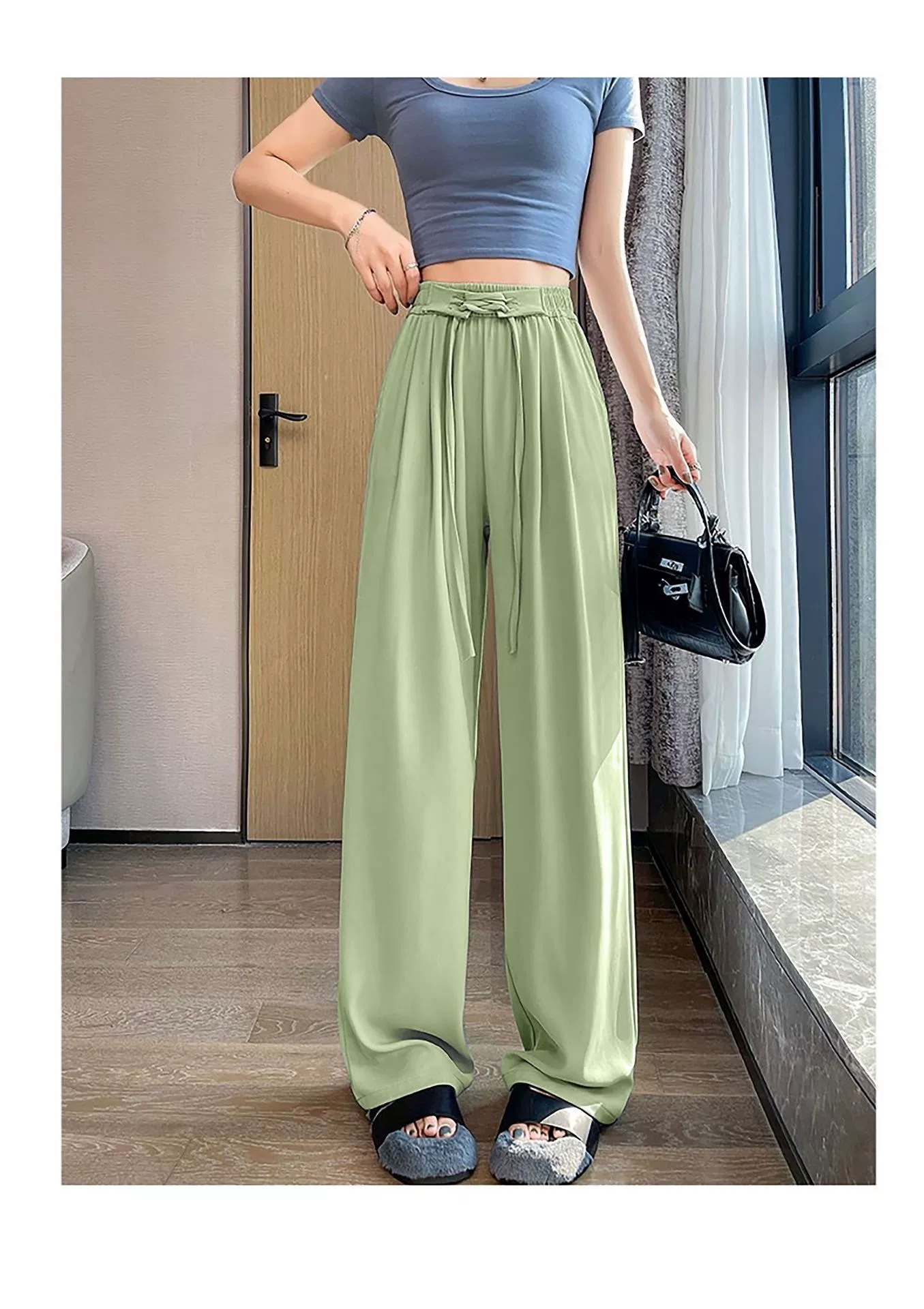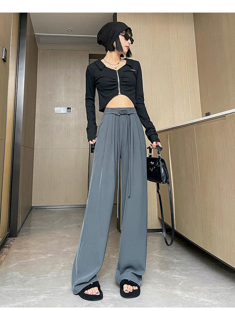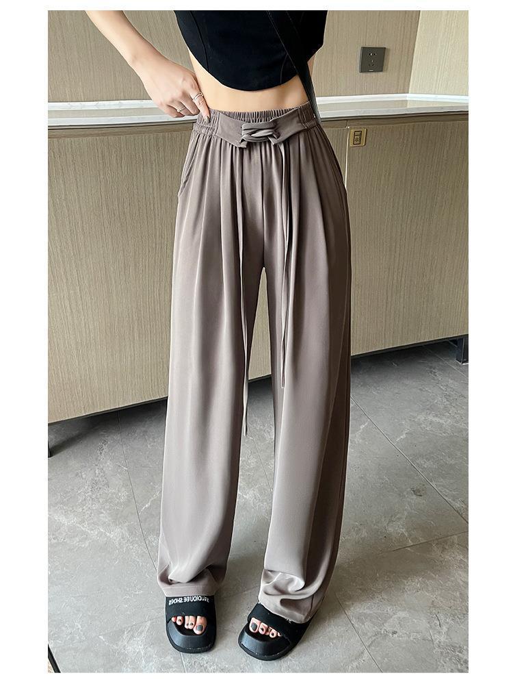 かっこいい スラックスパンツ かっこいい 脚長効果 スキニーパンツ 韓国ファッション アイスシルク レディース ハイウエストパンツ夏 薄手 ハイウエスト ワイドパンツ ロングパンツ