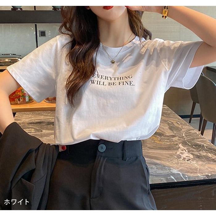 Tシャツ レディース 春 夏 春夏 白 カットソー トップス ロゴ Tシャツ 伸縮性 ゆったり ストレッチ カジュアル ロゴtシャツ 半袖トップス きれいめ 半袖