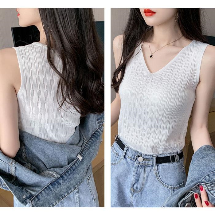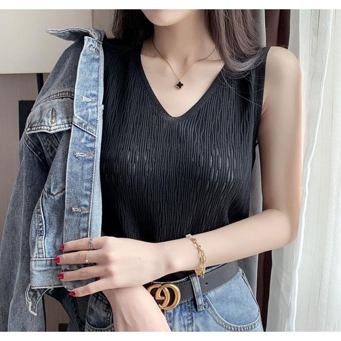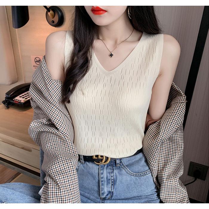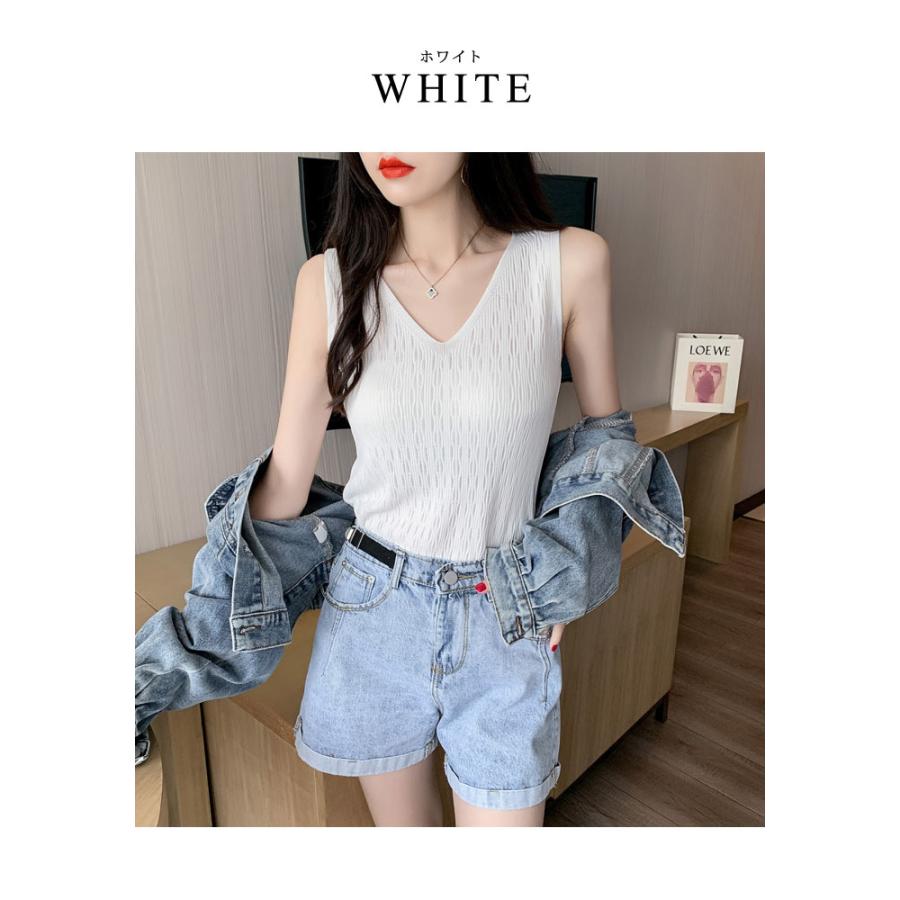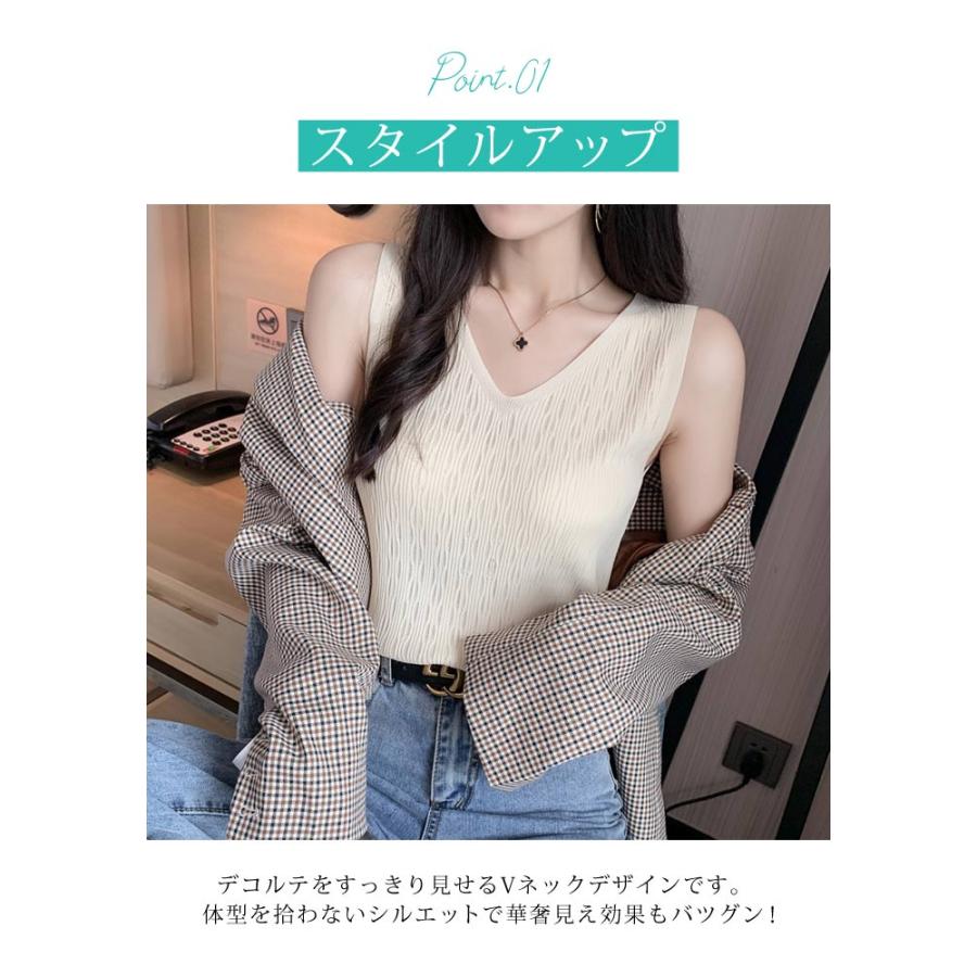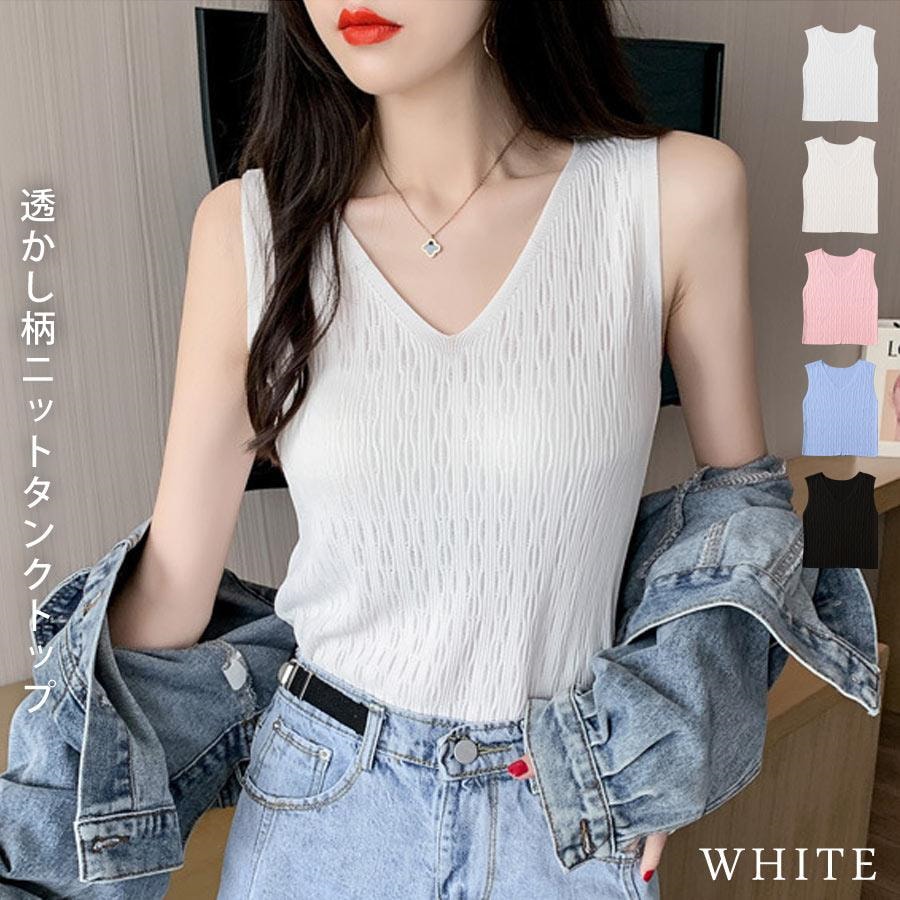 ニットトップス レディース 春 黒 白 タンクトップ ブラック ホワイト ベージュ ピンク ブルー ノースリーブ サマーニット Vネック キャミソール
