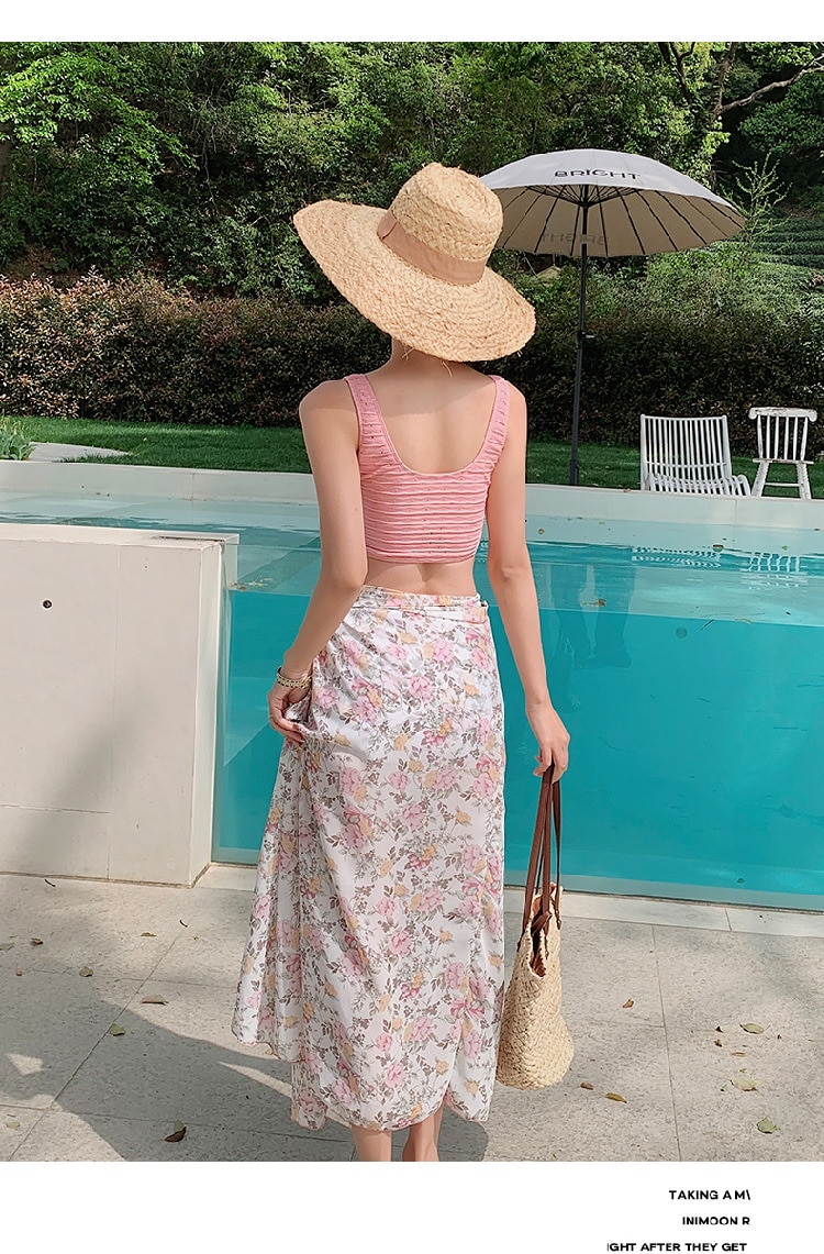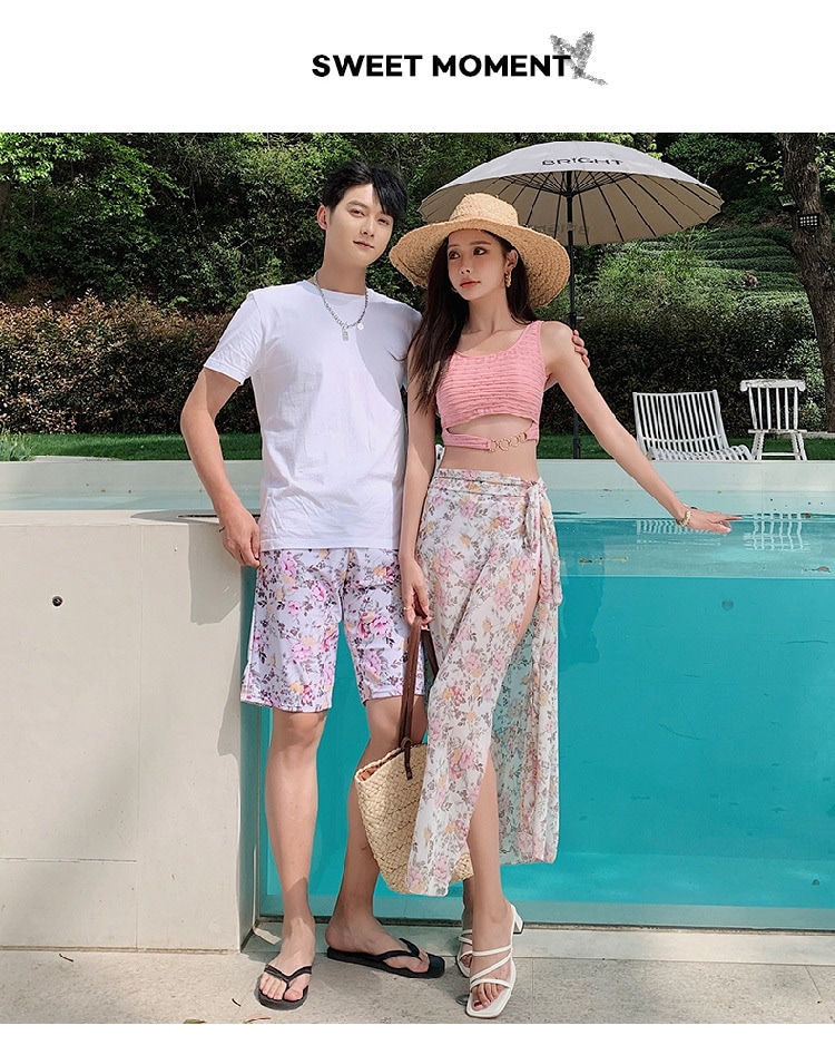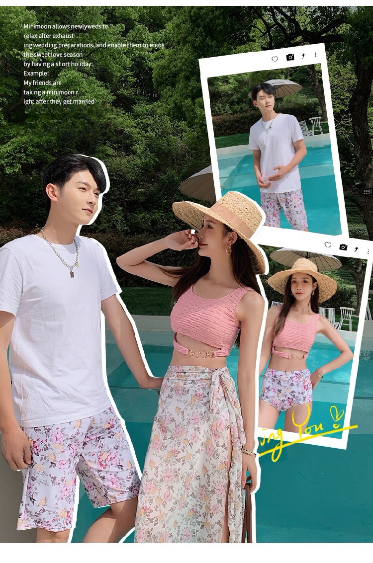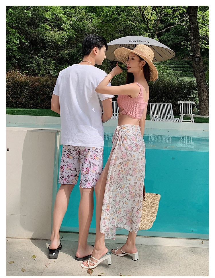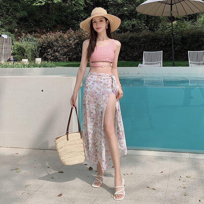DP-YY-20 温泉島のバケーションカップル水着女性の夏の保守的なスタイル腹部を覆う薄さ集まり花柄シフォンのロングスカート水着 水着セット
