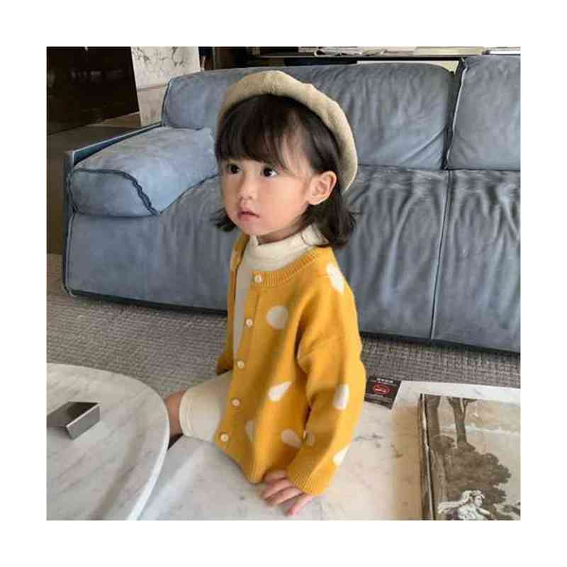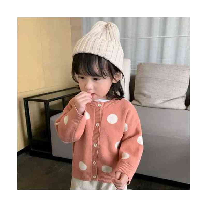 ドット柄カーディガン春秋ショート丈カーディガンキッズ丸襟カジュアルカーディガンドット柄カーディシンプルトップスカジュアル長袖女の子おでかけニットカーディガン
