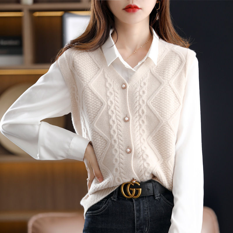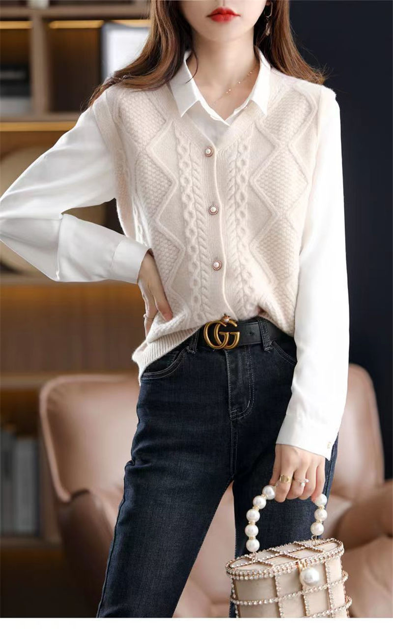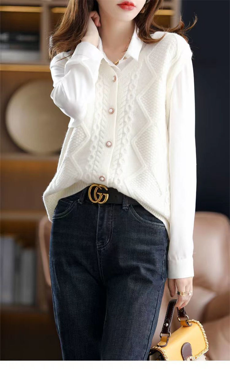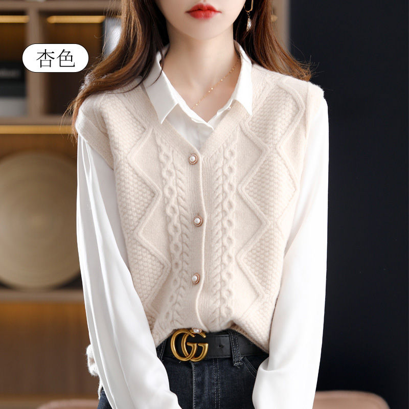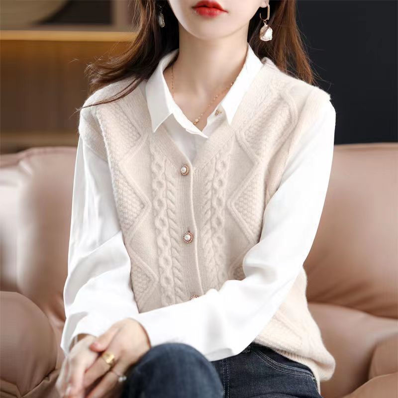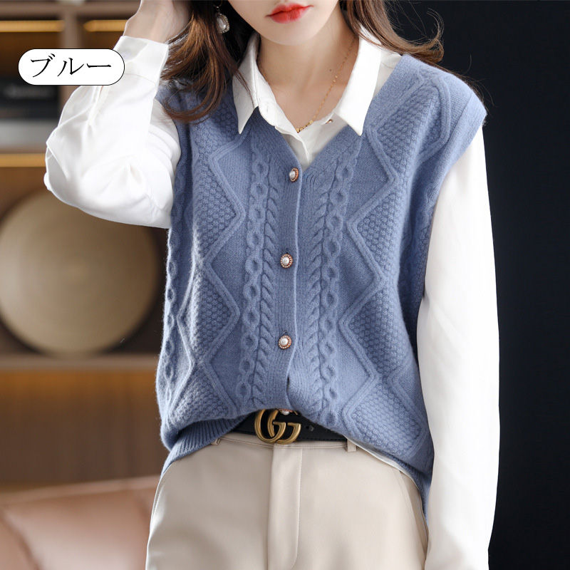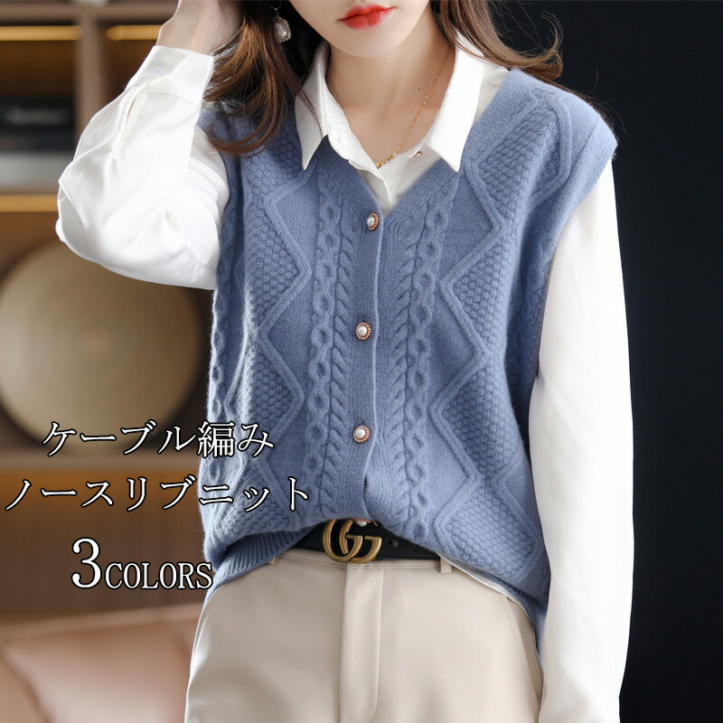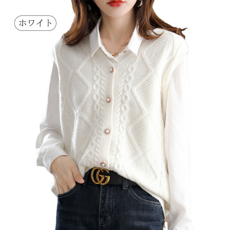 ニットベスト ベスト ニット レディース セーター ニットセーター ノースリーブ レイヤード カーディガン ニットトップス 前開け 重ね着 ニット ベスト ケーブル編み 春秋 Vルネック ドルマン 無