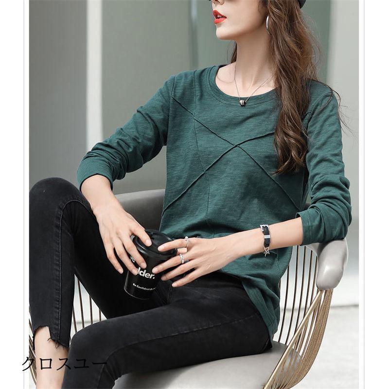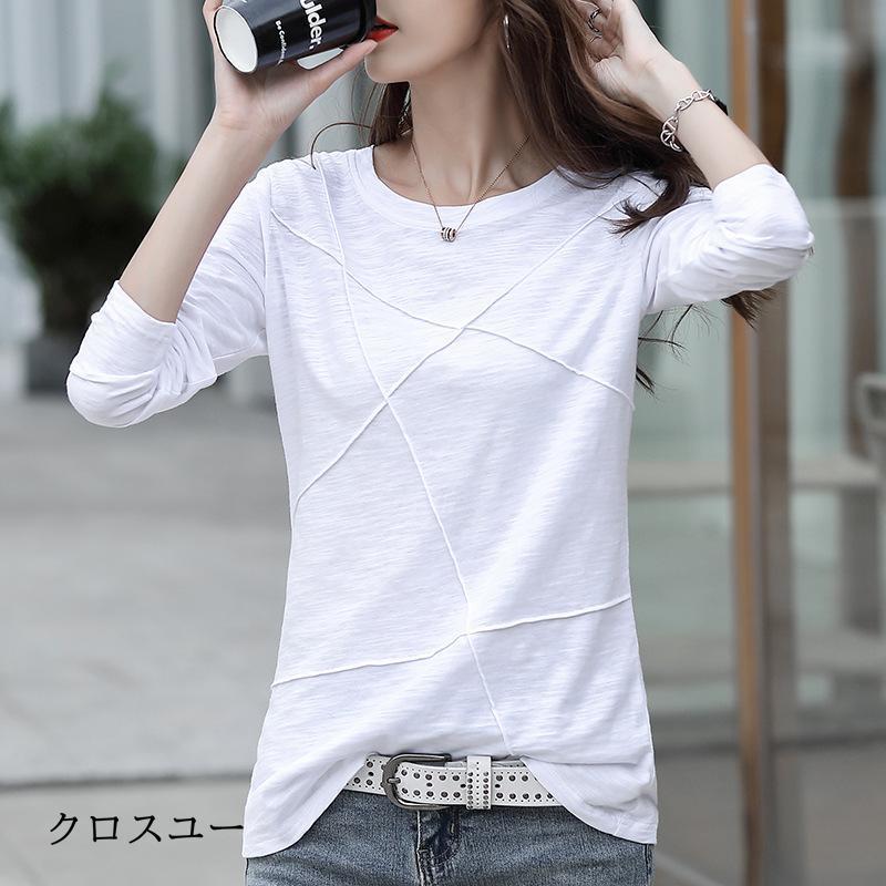 カットソー 長袖 Tシャツ レディース ス 秋春冬 tシャツ ロンT 重ね着風 オーバー 女性用 通勤 通学 体型カバー 着痩せ オシャレ Tシャツ カットソー